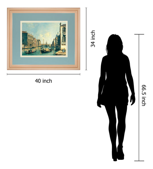 The Grand Canal, Venice The Rialto Bridge By Antonia Canaletto - Framed Print Wall Art - Blue