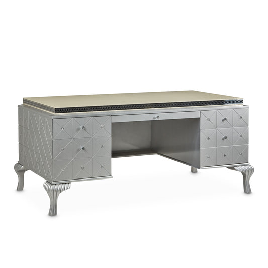 Hollywood Swank - Dining Table With Glass Inserts - Pearl Caviar