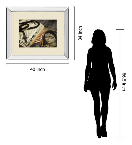 Rosary In Bible By Kbuntu - Mirror Framed Print Wall Art - Dark Brown