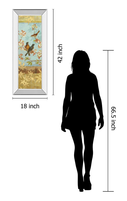 Robins & Blooms Panel By Pamela Gladding - Mirror Framed Print Wall Art - Blue