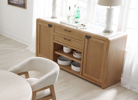 Escape - Dining 72 In. Buffet Server With Stone Top - Glazed Natural Oak Natural Cane Vanilla Bean Stone