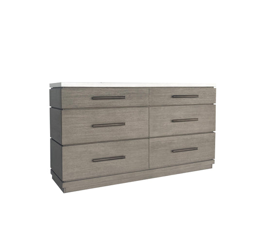 Pure Modern Bedroom - 6 Drawer Dresser And Mirror - Moonstone