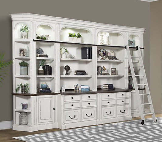 Catalina - 8 Piece Library Wall With Writing Desk - Cottage White