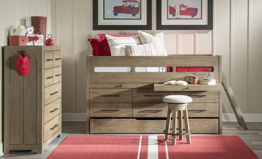 Vintage Market - Upholstered Stool - Barnwood Oak