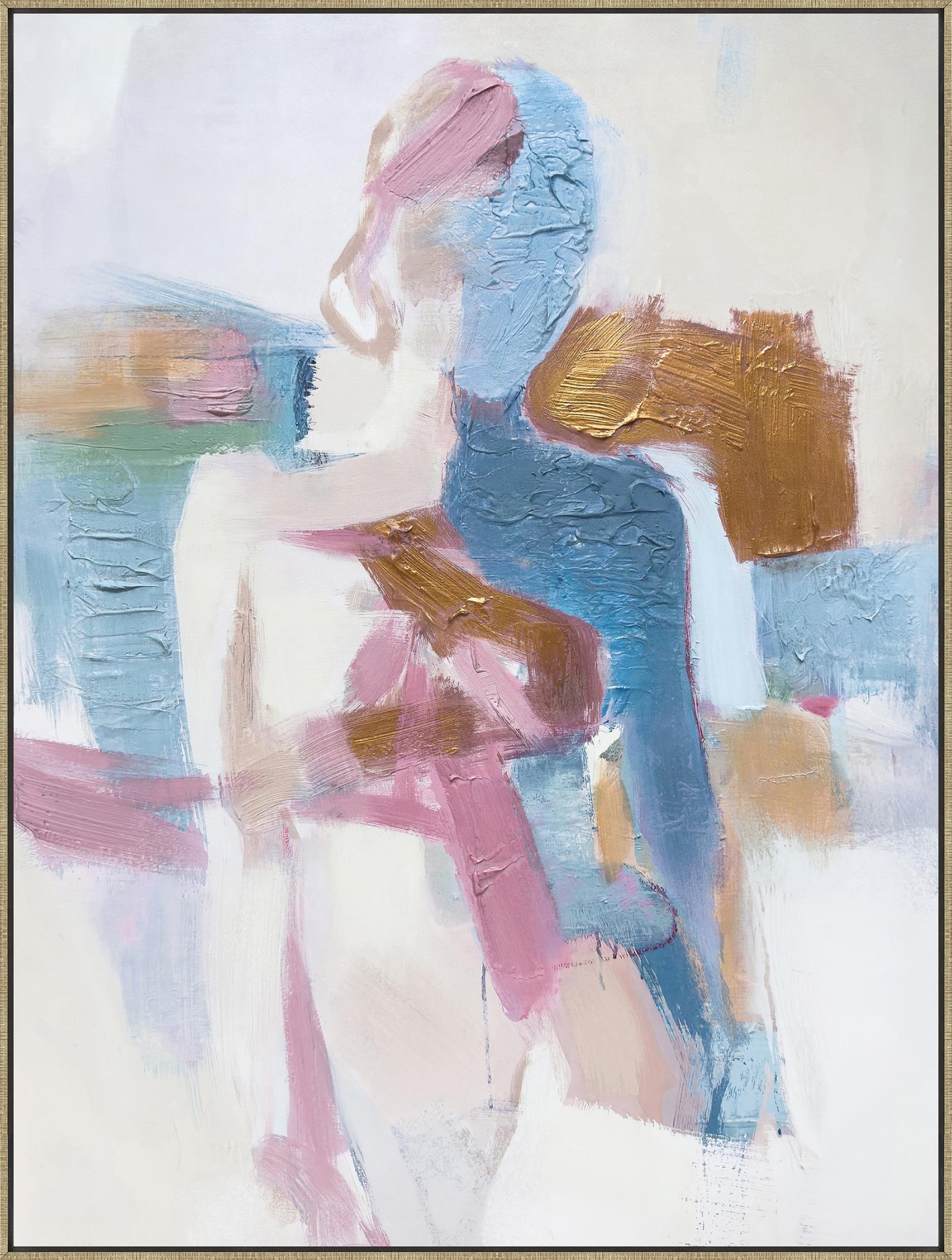 30x40 Hand Painted Textured Canvas In Frame - Light Blue / Gold