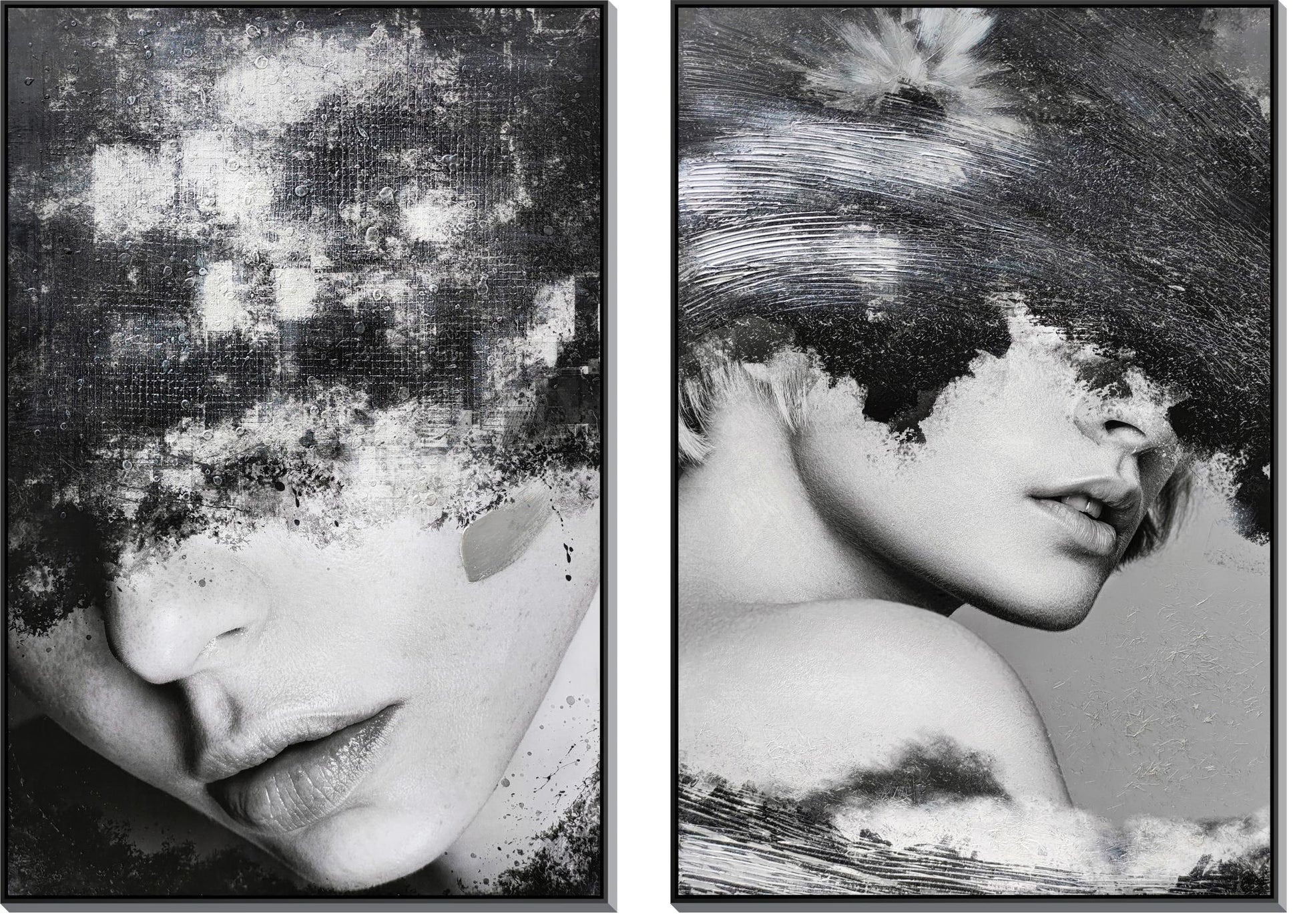 32x47 Hand Painted Textured Canvas In Frame (Set of 2) - Dark Gray