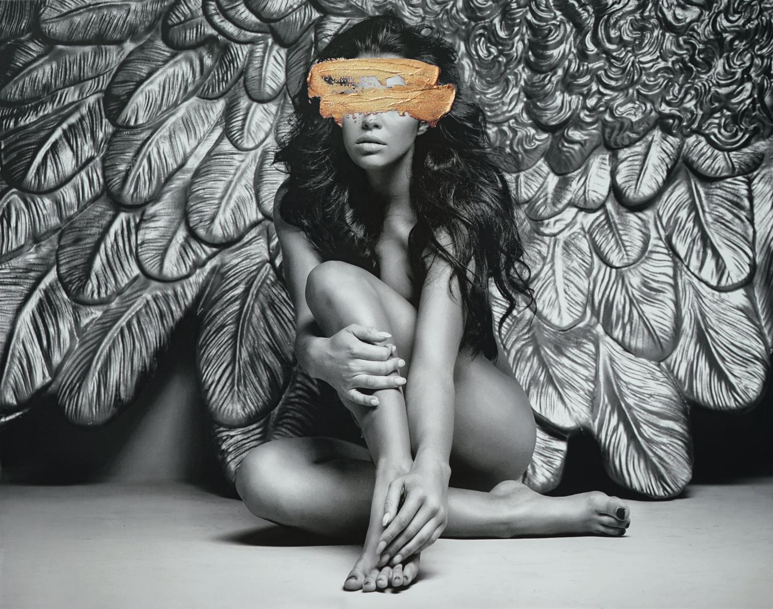 71x56 Hand Painted Textured Canvas - Dark Gray