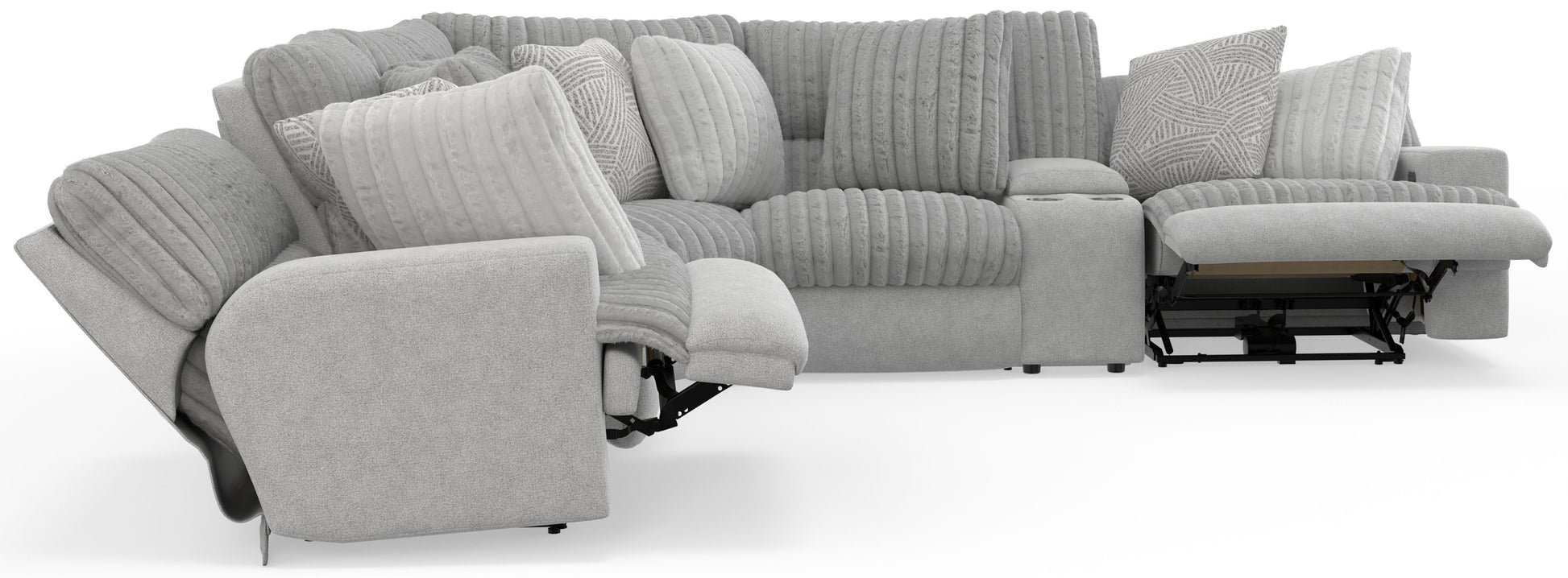 Abraxas is a Modular Reclining Sectional with a contemporary track arm design. A luxurious faux fur fabric and a variety of correlating toss pillows provide added style and seating comfort.