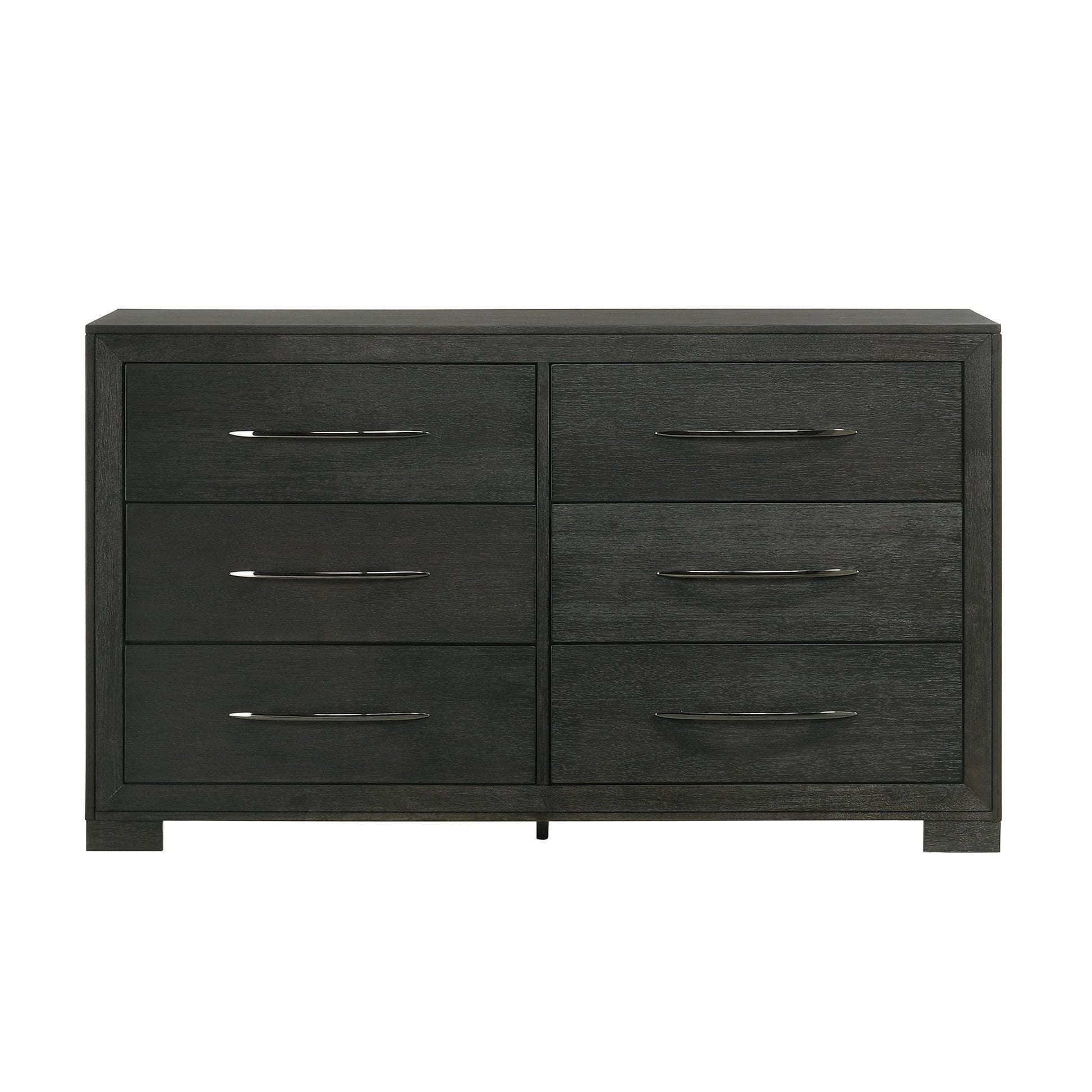 Introducing the Allan 6-Drawer Dresser, a sleek and modern addition to your bedroom. With its clean-line design and wood grain black finish, this dresser exudes contemporary fashion. The chrome handles add a touch of sophistication to the overall look. Crafted with quality materials, this dresser is built to last and is perfect for those who appreciate minimalist aesthetics and high-quality design.