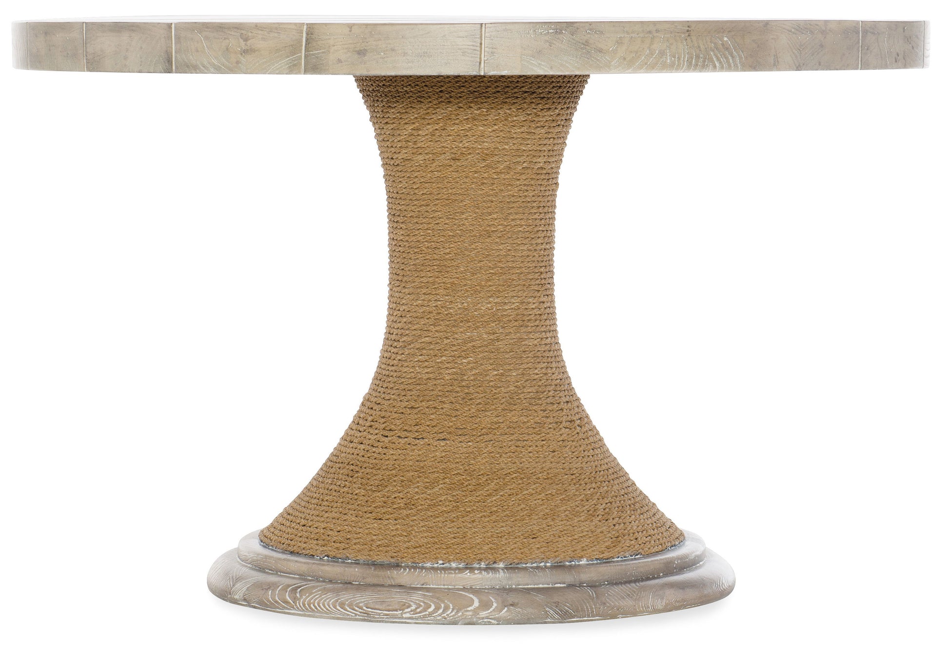 - Light wood finish with rope wrapped base