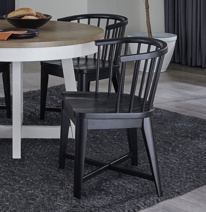 This chair is inspired by heritage furniture styles, featuring a classic barrel-back design that will add an element of updated vintage charm to your dining room. The deep, hand-painted satin finish in Iron Black contrasts beautifully with all furniture, making it a versatile addition to your home decor. The stylish X-shaped base of this chair adds character and stability, ensuring that it can withstand daily use. The solid, tapered wood legs not only provide style but also ensure strength, making it a durable choice for your home. This chair is sized to complement today's dining tables, so you can be sure that it will fit perfectly into your existing decor. Whether you're hosting a dinner party or enjoying a quiet meal with your family, this Barrel Dining Chair is sure to impress.