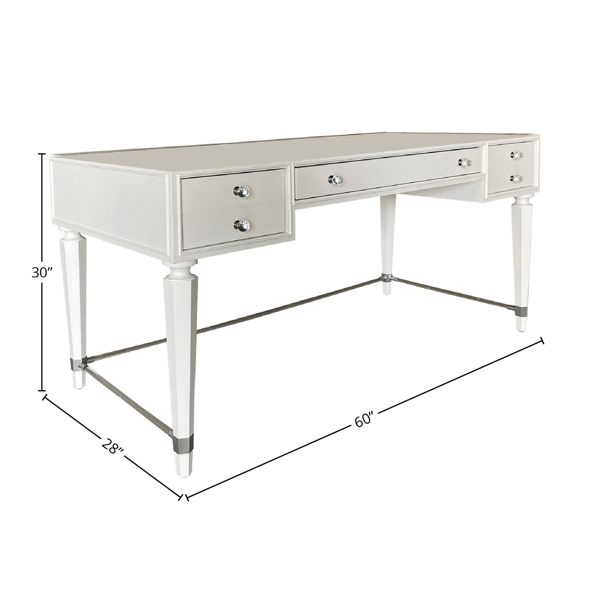 The Ardent writing desk's signature look introduces an element of fasion with its jewelry-inspired acrylic hardware, fashion forward leg supports, and English dovetail drawer construction.