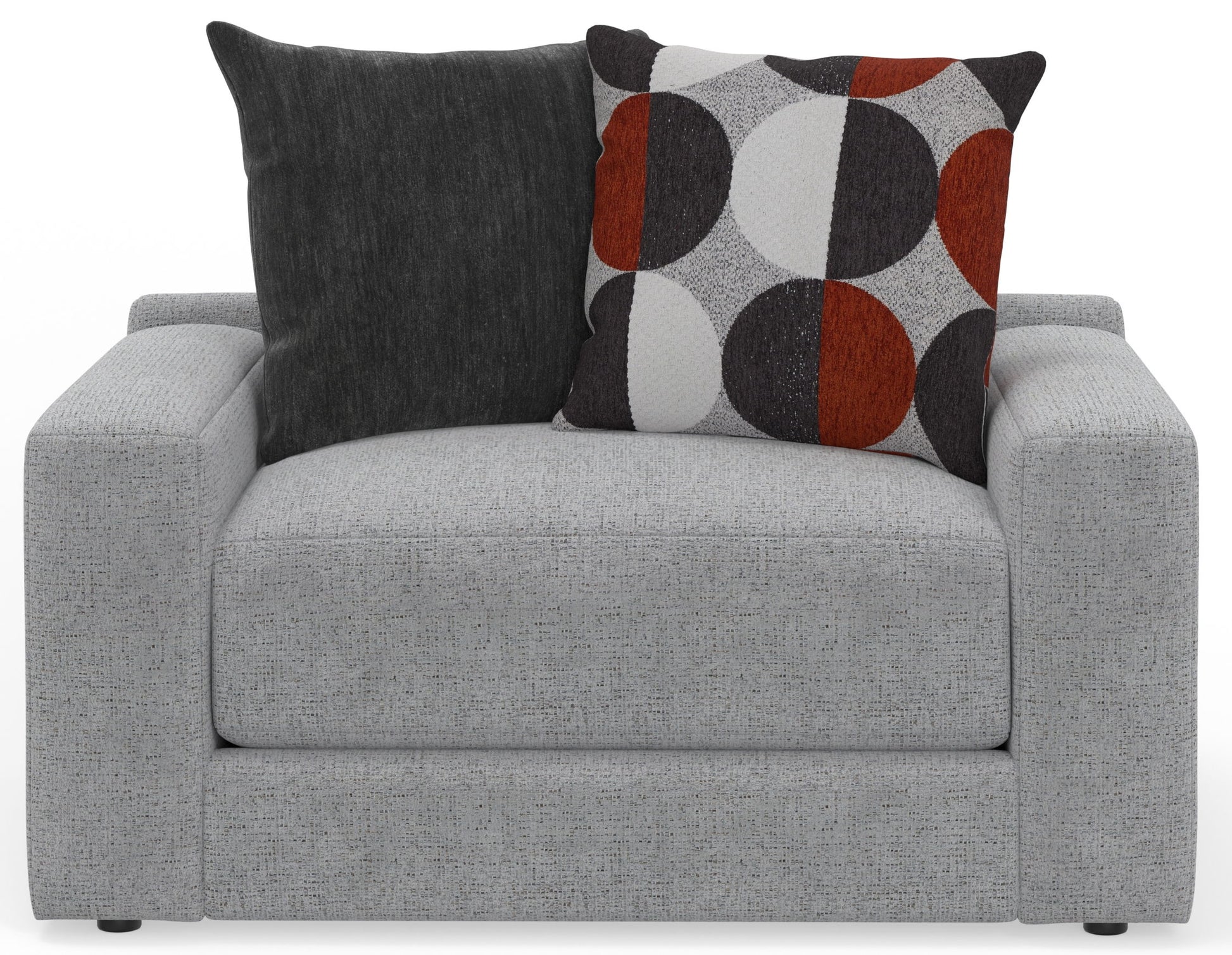 Arlo is a modern track arm design in a soft and durable chenille fabric. This large scale chair features our deep seating Cuddler Cushion for ulitmate comfort.