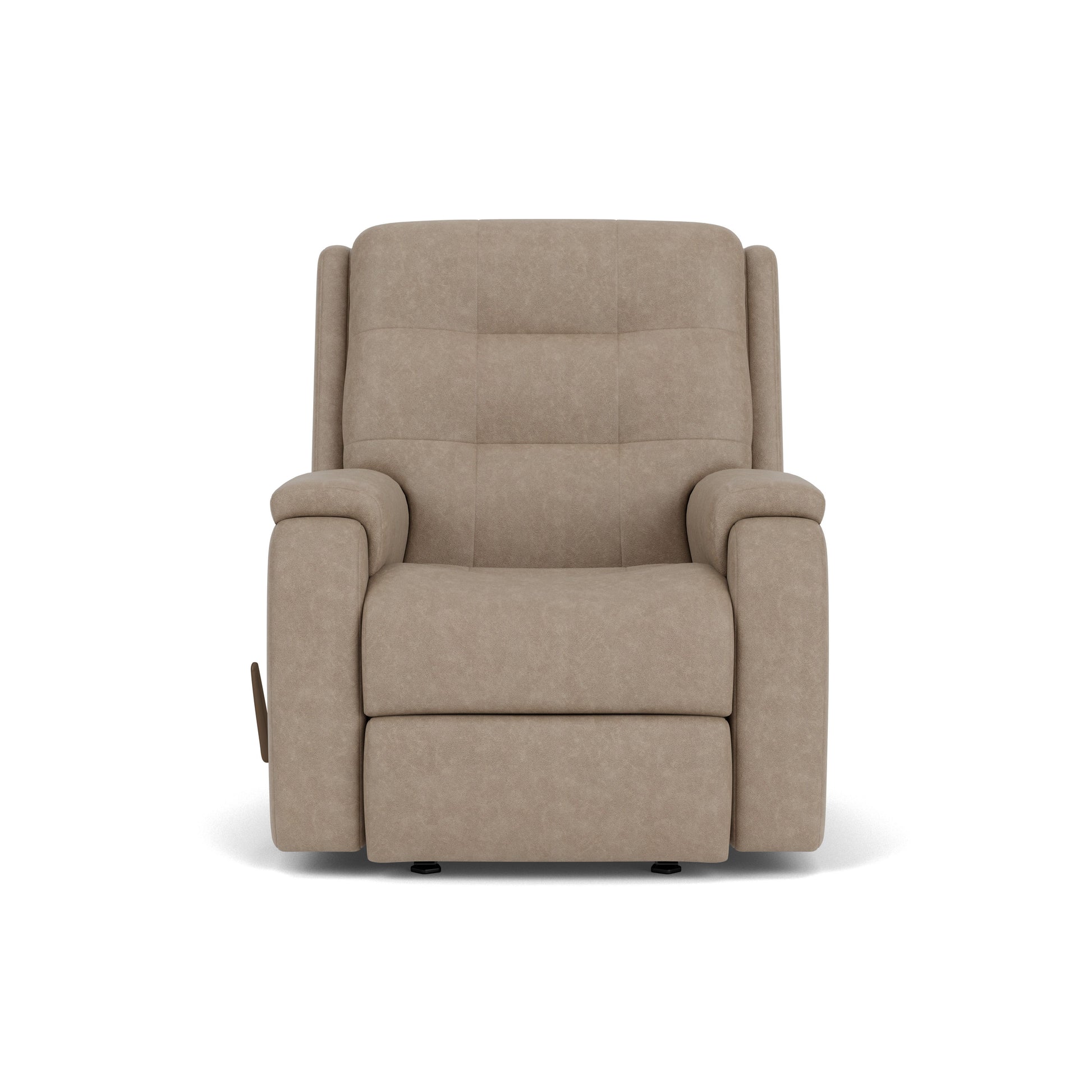 Picture yourself in comfort and style. Arlo is a transitional motion style that features a refined, rounded pad-over track arm that is lined with blind seams. It's pull-tufted back cushions create a unique subtle pattern and added pockets of comfort. This recliner's proven comfort combination is created from the generously scaled triple-divide back, contour seating, and chaise pad design. The Blue Steel Spring ensures this piece is in it for the long-haul. The smooth release handle lets you change angles effortlessly from an upright to a fully reclined position. Arlo will bring plush comfort and tailored elegance to your room.