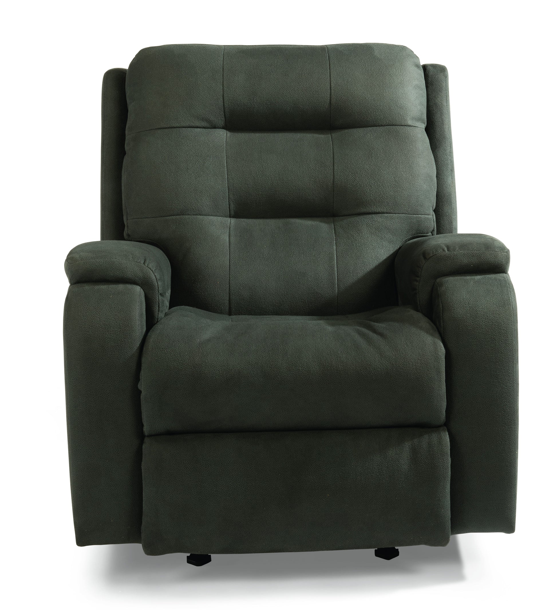 Picture yourself in comfort and style. Arlo is a transitional motion style that features a refined, rounded pad-over track arm that is lined with blind seams. It's pull-tufted back cushions create a unique subtle pattern and added pockets of comfort. This power rocking recliner's proven comfort combination is created from the generously scaled triple-divide back, contour seating, and chaise pad design. The Blue Steel Spring ensures this piece is in it for the long-haul. The power button adjusts the headrest and recline simultaneously, letting you change angles from an upright to a fully reclined position. Charge your electronics with the provided USB port in the power button. Arlo will bring plush comfort and tailored elegance to your room.