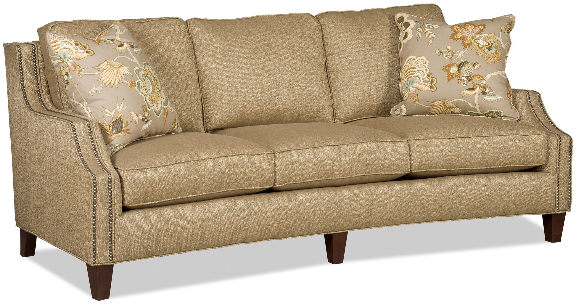 This 3 over 3 sofa comes standard with Down Plush seat cushions, welt, 1/2'' brass nailhead trim, and a pair of 21'' throw pillows. The Upholstery Collection features a mix of coordinating sofa, loveseat, chair and ottoman groups to help you create a pulled-together and inspiring space for your home. With styles ranging from traditional to contemporary – and everything in between – each can be dressed in more than 500 cover options for a variety of lifestyles. Each piece features blend-down seat cushions and throw pillows for added comfort.