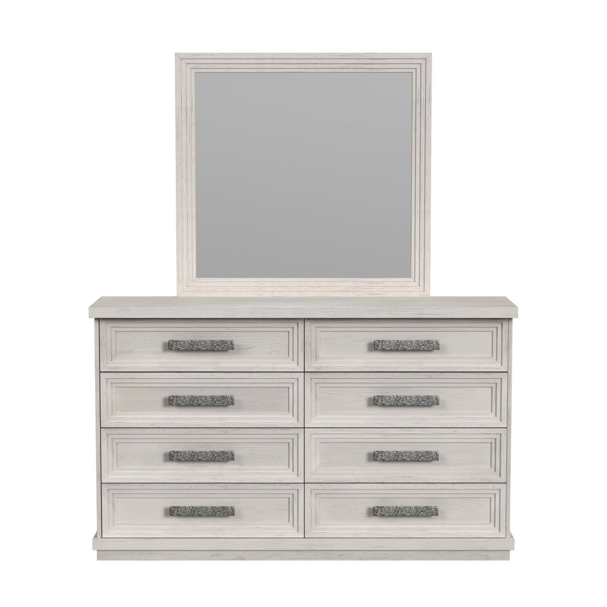 Create a haven of relaxation with the Avalanche Dresser and Mirror Set. The antique white finish radiates warmth and charm, creating an inviting atmosphere that complements any decor style. The drawer fronts feature an elegant paneled design, adding depth and visual interest. All drawers are adorned with distinctive metal pulls, carefully crafted with a textured finish to add a touch of rustic appeal. The eight spacious drawers allow for plentiful storage space for all your clothes and belongings, while the mirror seamlessly matches for a coordinated look. Embrace these beautiful pieces from the Avalanche bedroom collection and make every day feel like an organized retreat.