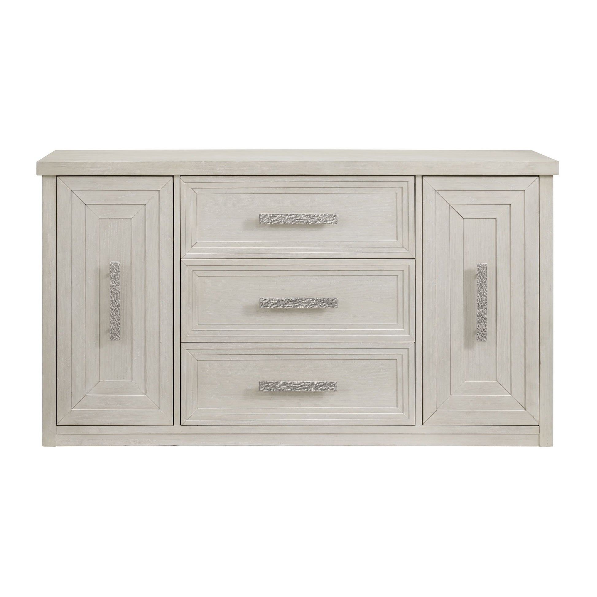 Introducing the Avalanche Server, where modern style meets timeless elegance. This exquisite piece showcases intricate raised geometric patterns integrated throughout its design, finished in a charming antique white that exudes sophistication and grace. The top drawer, lined with grey felt, offers a touch of luxury, while metal hammered hardware adds a rustic, artisanal feel. With three spacious drawers and two large cabinets, this server provides ample storage for all your dining essentials. Perfectly blending functionality and beauty, the Avalanche Server is a stunning centerpiece that enhances any dining room with its refined, contemporary appeal.
