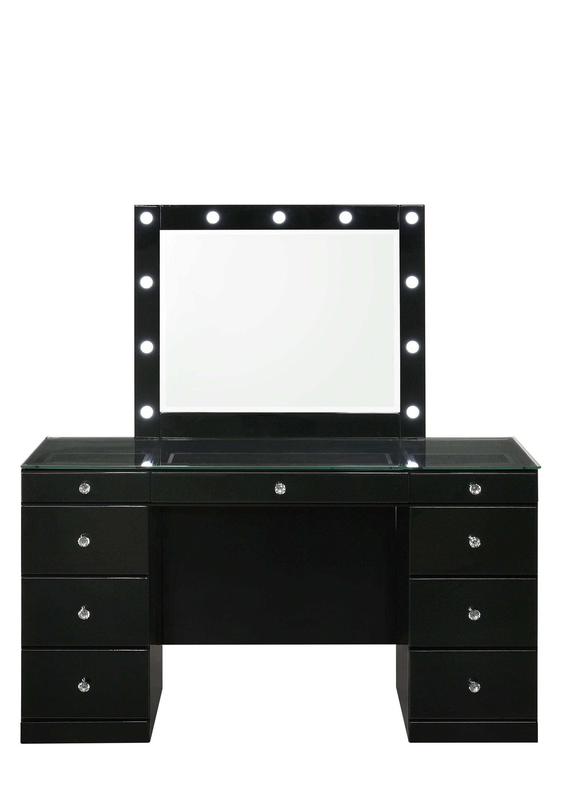 Avery - Vanity Desk With Glass Top, LED Mirror & Stool - Black