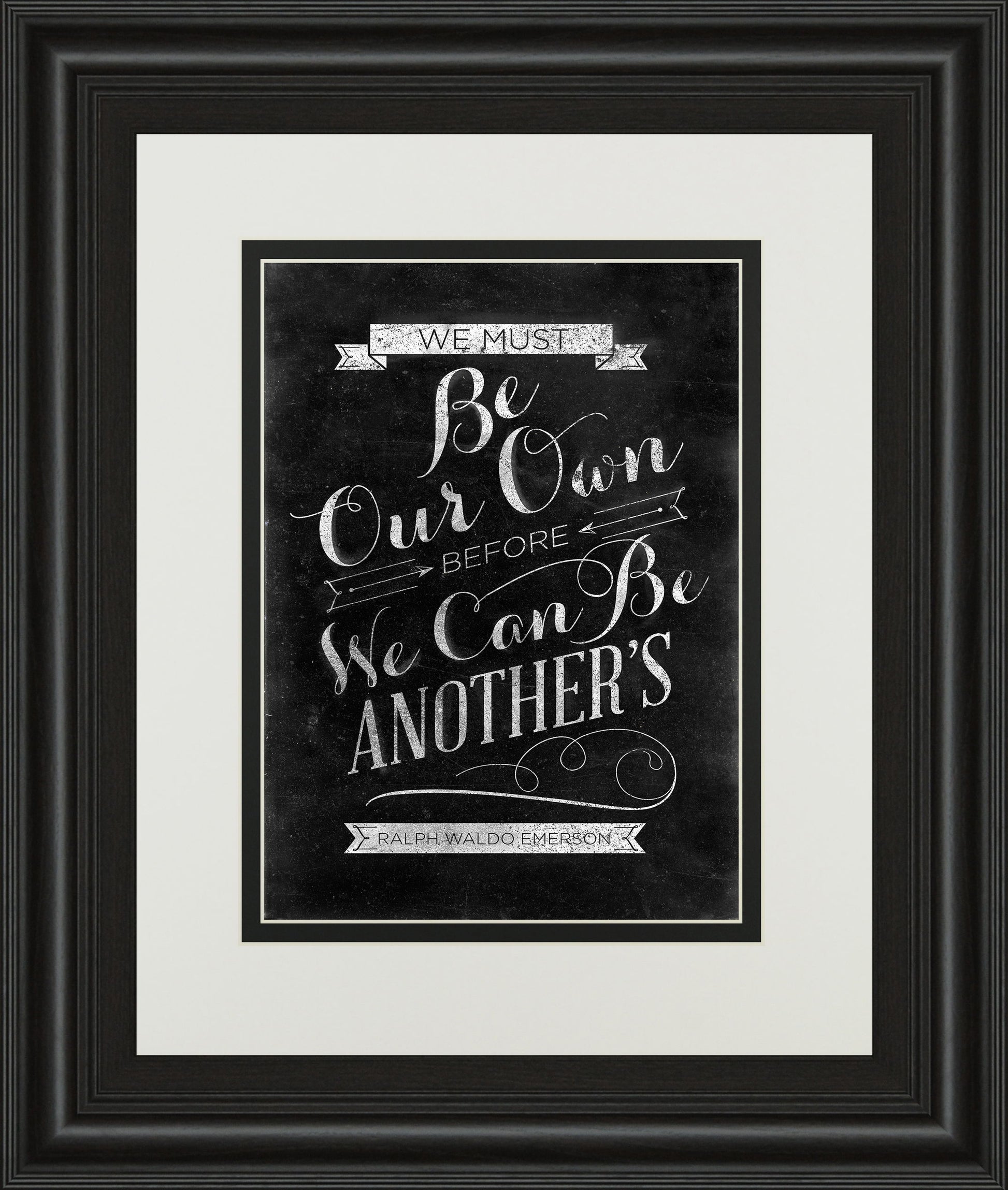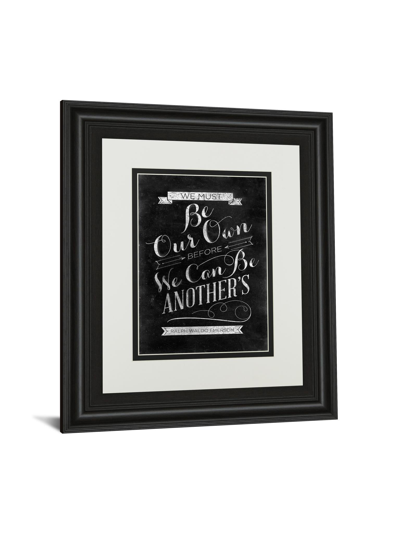 - A motivational piece that reads "We must be our own before we can be another's". Ralph Waldo Emerson. This piece is designed to evoke positive feelings.
