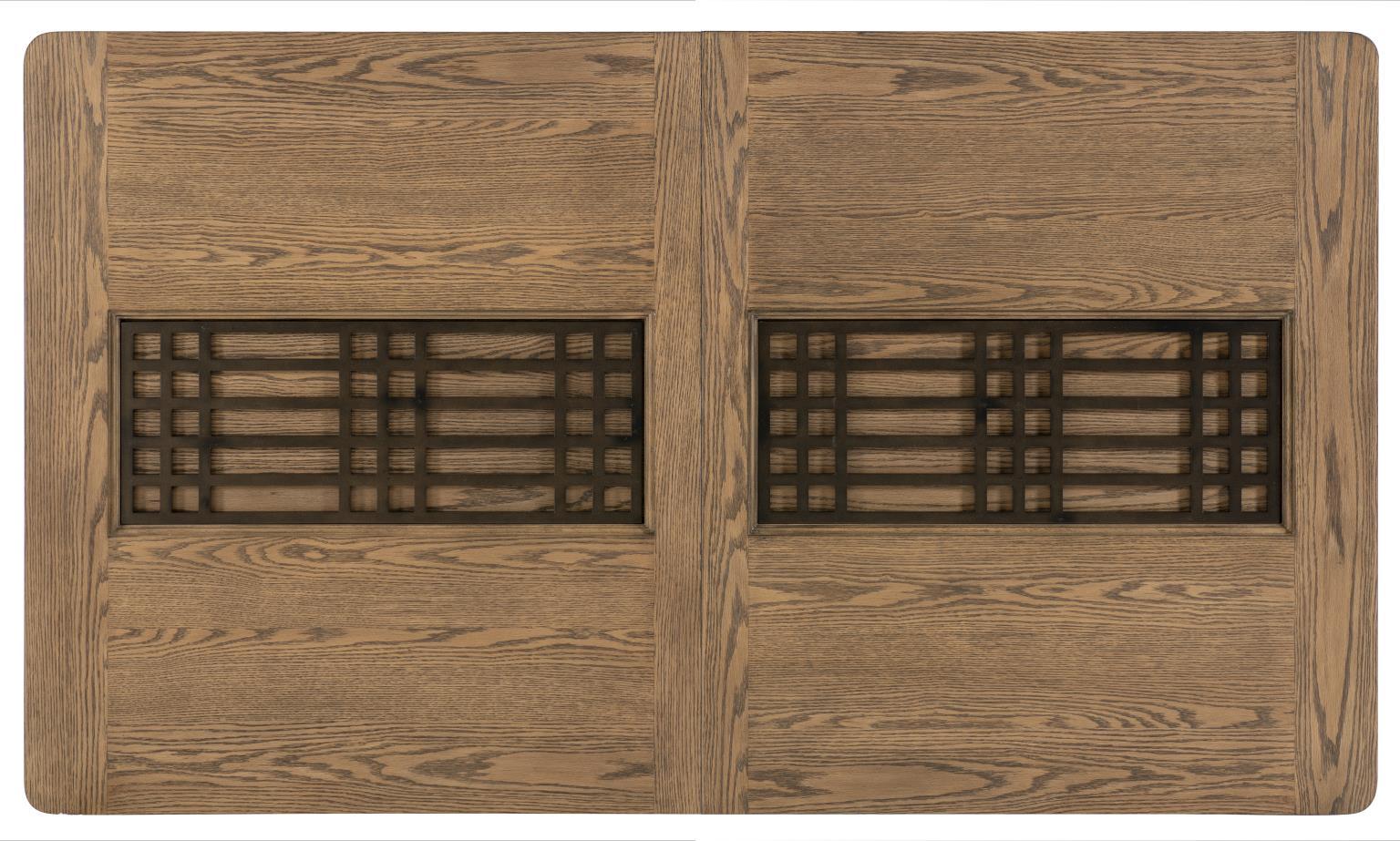 Crafted of Hardwood Solids with Oak Veneers in a Dusty Barley finish the Beacon Hill bedroom and dining furniture collection has an Arts & Crafts-inspired design that offers a fresh traditional look. Striking grid-like wood fretwork on the headboards and some case pieces are finished in a contrasting metal-colored finish that matches the Oiled Bronze hardware.