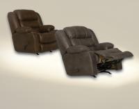 Beckley is a large scale recliner with a tall waterfall back, comfortable automotive seat, and convenient dual cupholders. Choose deep Walnut brown or cool Steel grey faux leather fabric.