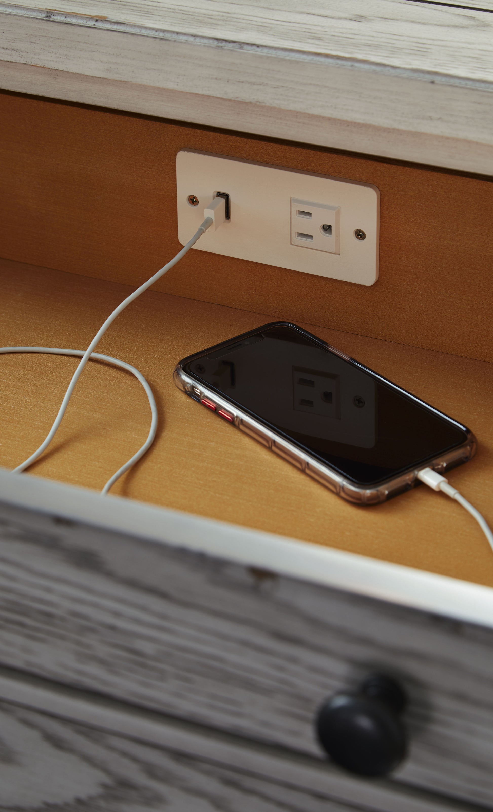 - Top Drawer Features an Outlet with USB for Overnight Charging