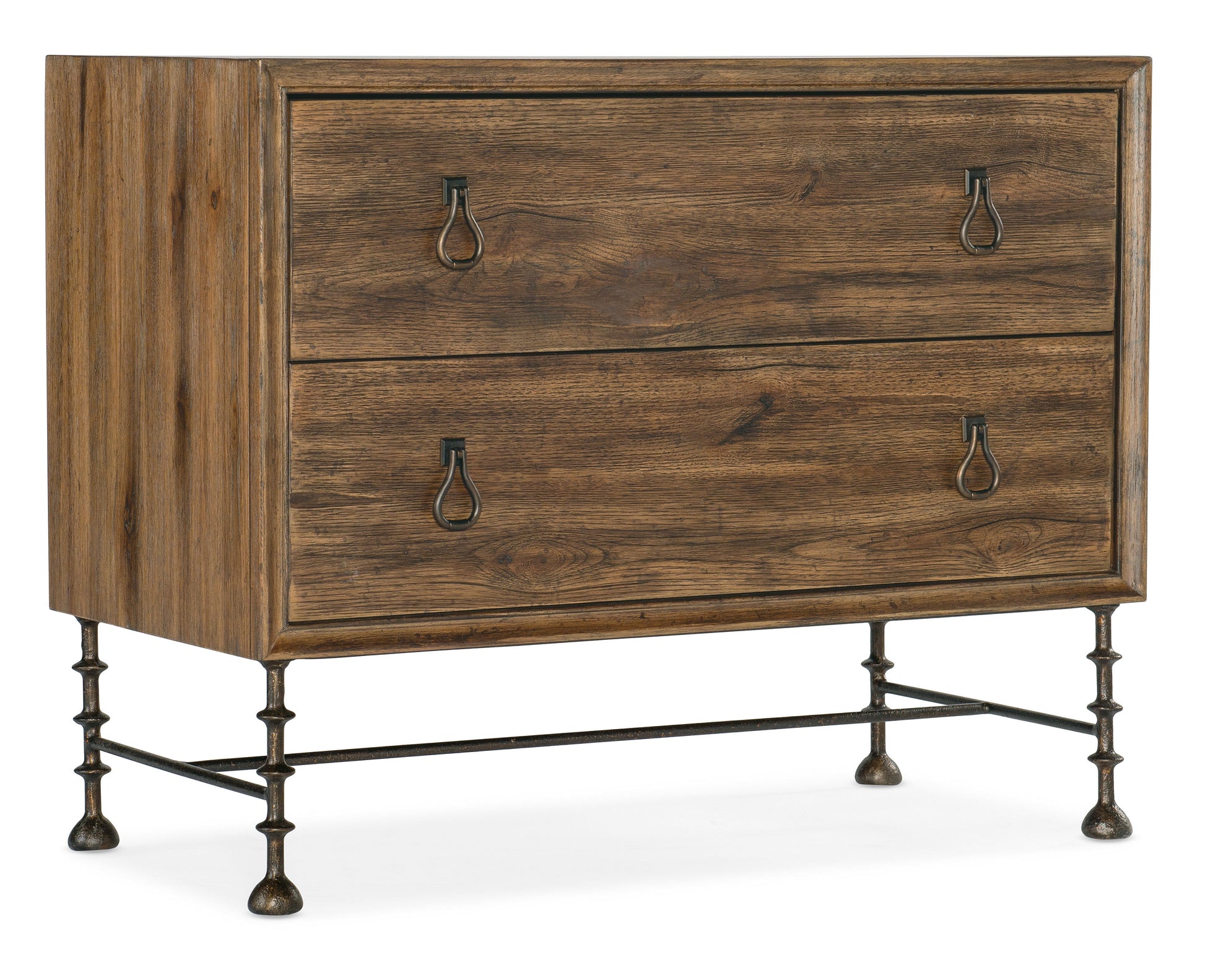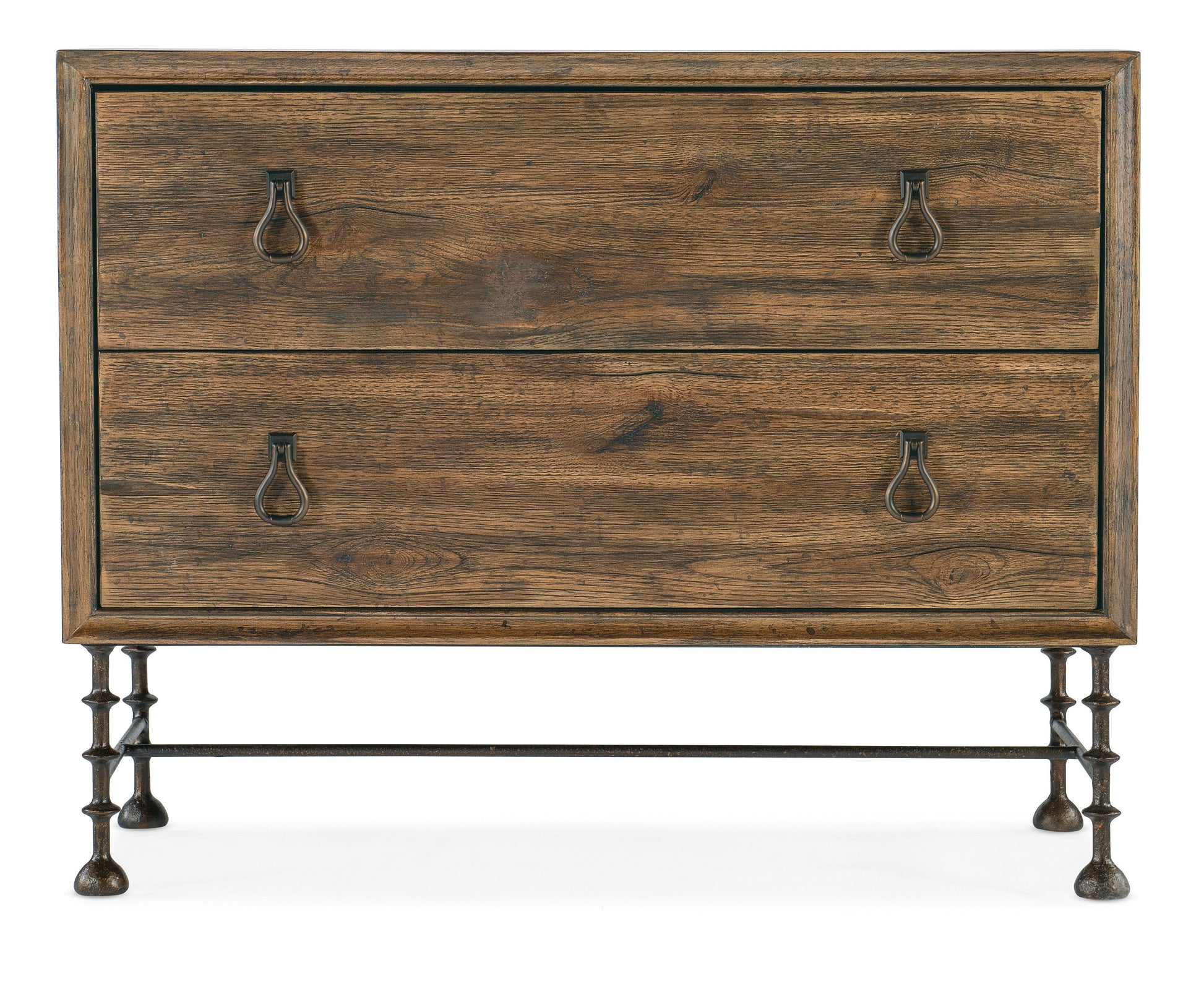 Warm and rustic, the Big Sky Bachelor’s Chest has a vintage design pairing a case crafted of rustic Pecky Hickory Veneers in the dark Charred Timber finish with turned metal legs and stretchers. Featuring two drawers, the top drawer has a removable felt liner and the bottom drawer is cedar-lined. There’s an FC707 power bar with 3 electrical outlets and one live USB port and a cord clip on the back.