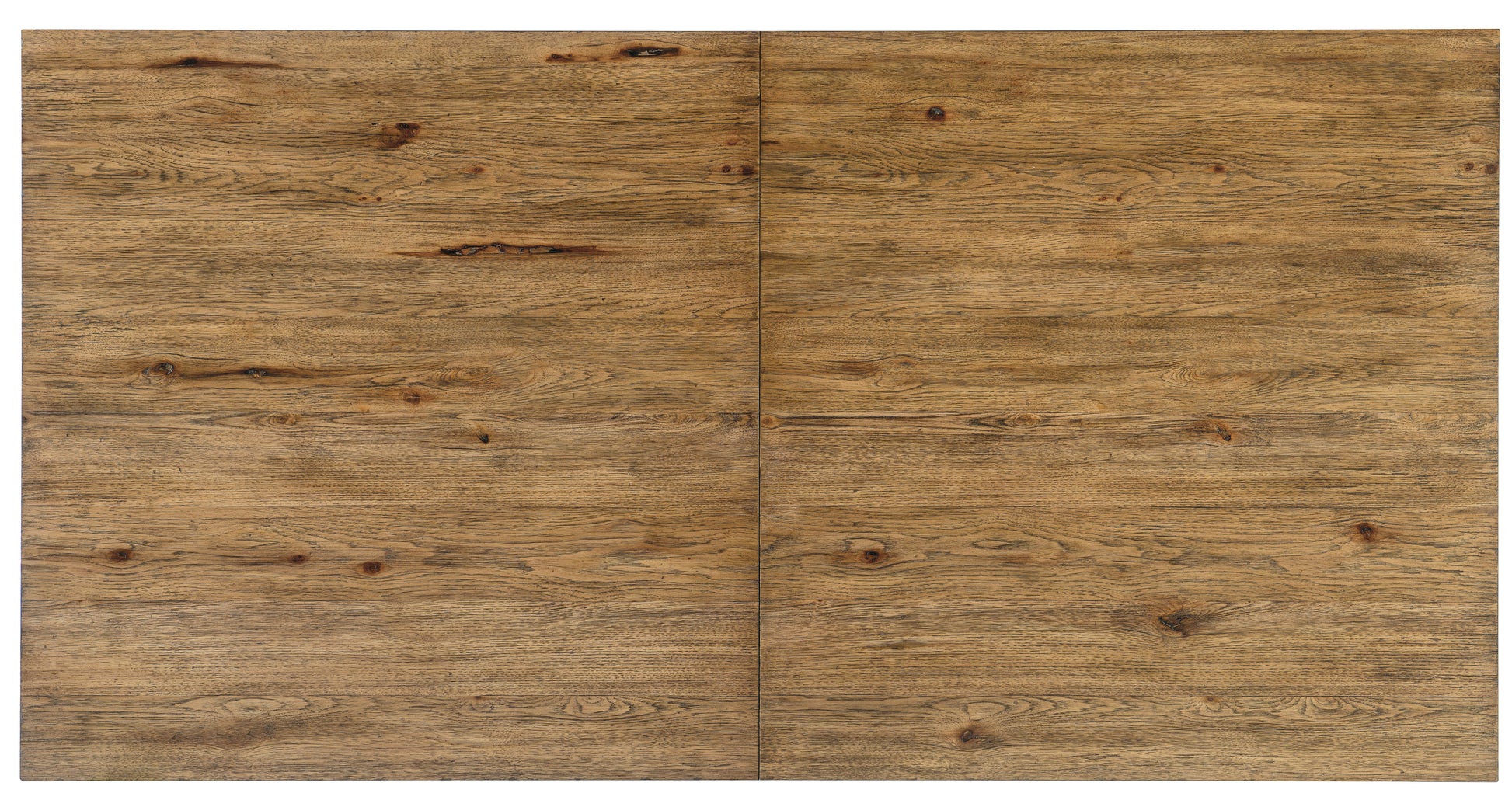 A clean, simple silhouette with Parson’s legs is married to the warm Vintage Natural finish over Pecky Hickory Veneers, displaying authentic knots and grain patterns. Featuring a solid-wood edged top and compound-mitered edges where the table legs meet the table, the table has one 24-inch leaf. Without the leaf, the table accommodates 2 coordinating arms and 4 coordinating side chairs, while it extends to 110 inches and accommodates 2 arms and 6 sides with the leaf.