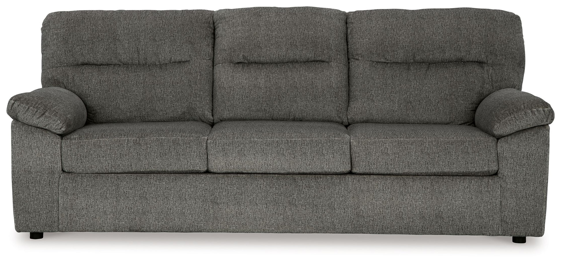 Make your living room the ultimate hangout with this sofa. Its buttery soft upholstery encourages you to lounge a while longer. And when it’s time to hit a peak state of relaxation, integrated cup holders and USB charging in the drop-down table keep all your essentials on hand. Comfortable, casual and contemporary, this sofa caters to the style you love and the function you crave.