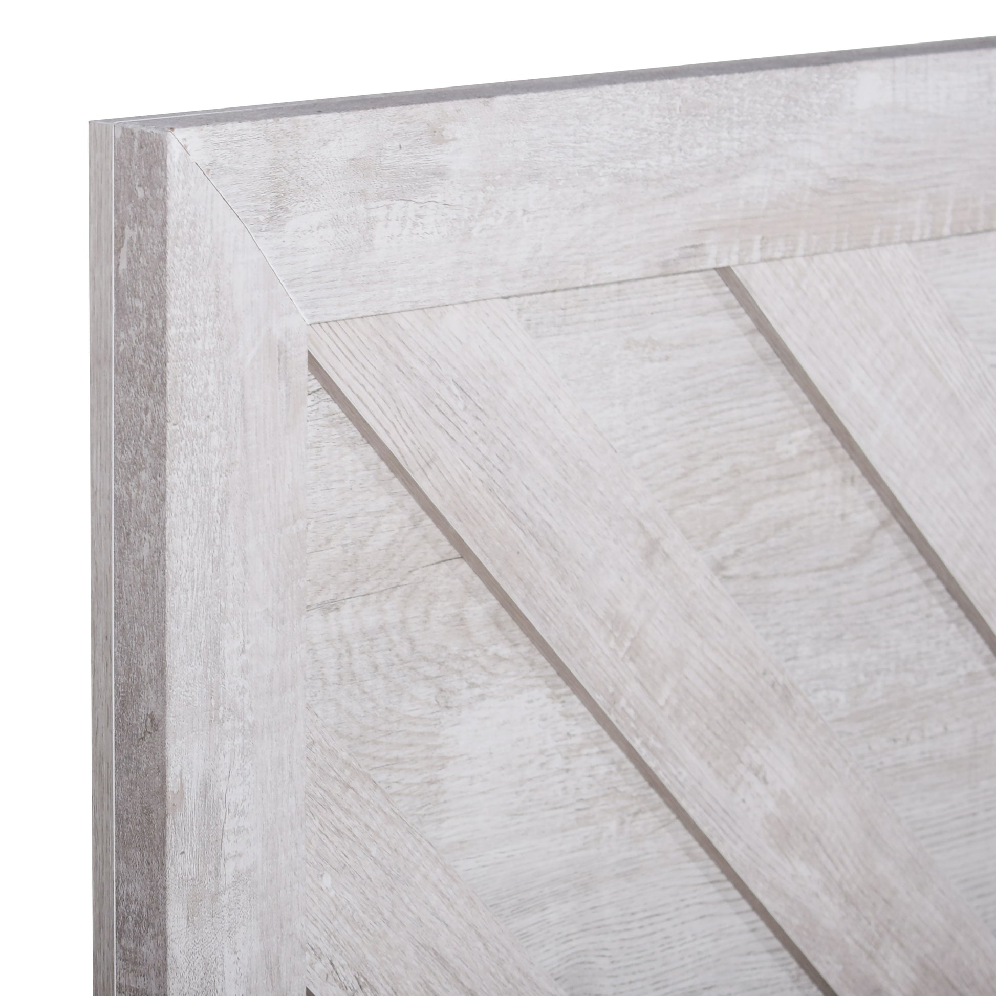 Meet the Biscayne Bed, meticulously crafted with durable manufactured wood and adorned with an Eco-Friendly decorative laminate for enduring strength and stability. Its Driftwood finish exudes a light, airy ambiance, perfect for unwinding after a hectic day. The tall headboard and matching footboard feature distinctive chevron pattern wood trim, adding an eye-catching element to your bedroom. With its versatile transitional design, this bed effortlessly complements a variety of styles, from coastal to contemporary, farmhouse to urban rustic. Experience both comfort and style with this remarkable addition to your bedroom decor.