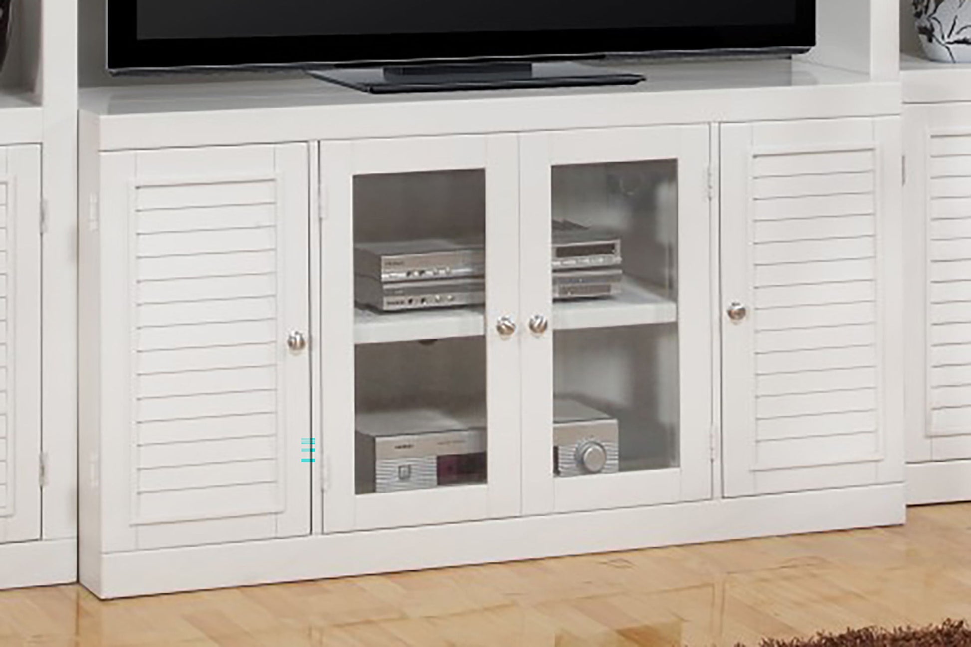 Build your ultimate library wall with the addition of this 56-inch TV Console. It's never been easier to show your media and electronics in a fashionable presentation as it is with the Boca collection. This console offers generous storage and innovative details designed to accommodate the latest technology. A fresh Cottage White finish gives it the signature look of the Boca collection.