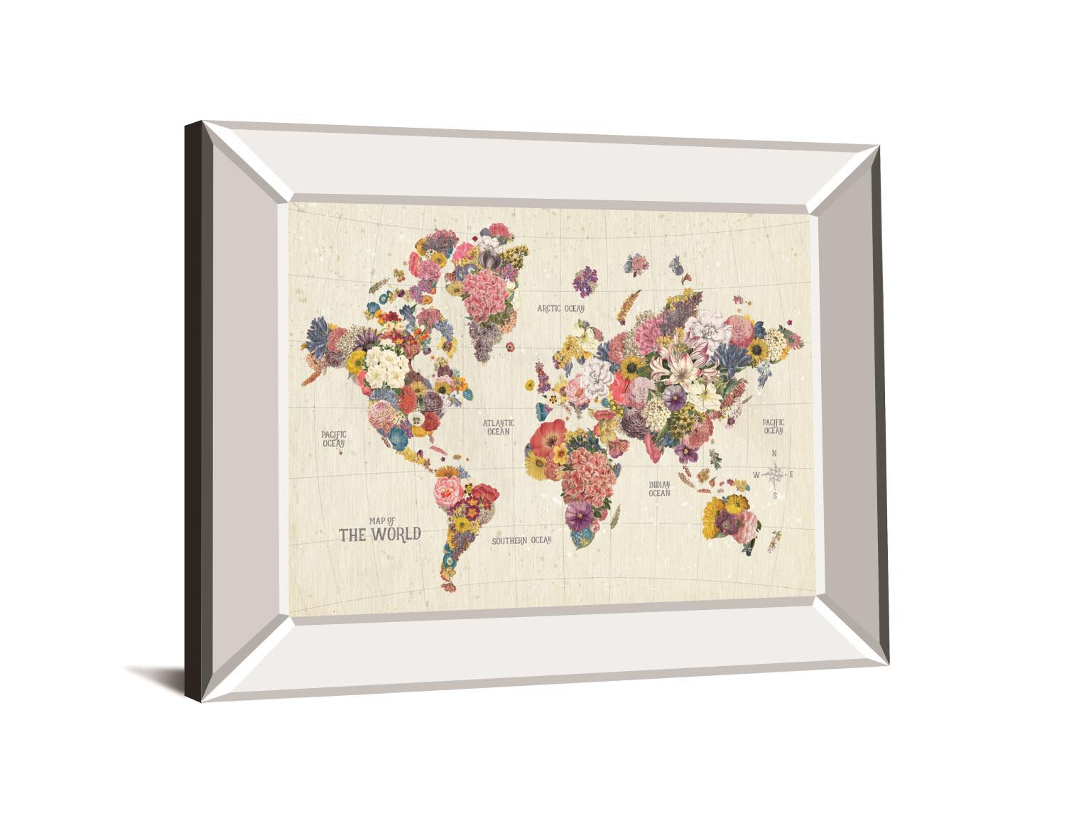 Botanical Floral Map Light Words By Wild Apple Portfolio - Mirror Framed Print Wall Art - White