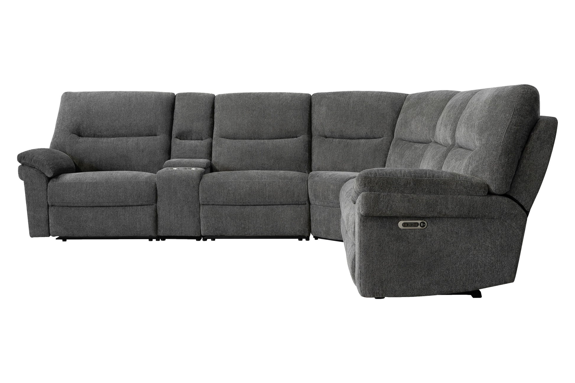 Bryant - 6 Piece Modular Power Reclining Sectional with Power Headrests and Entertainment Console - Ruffles Coal