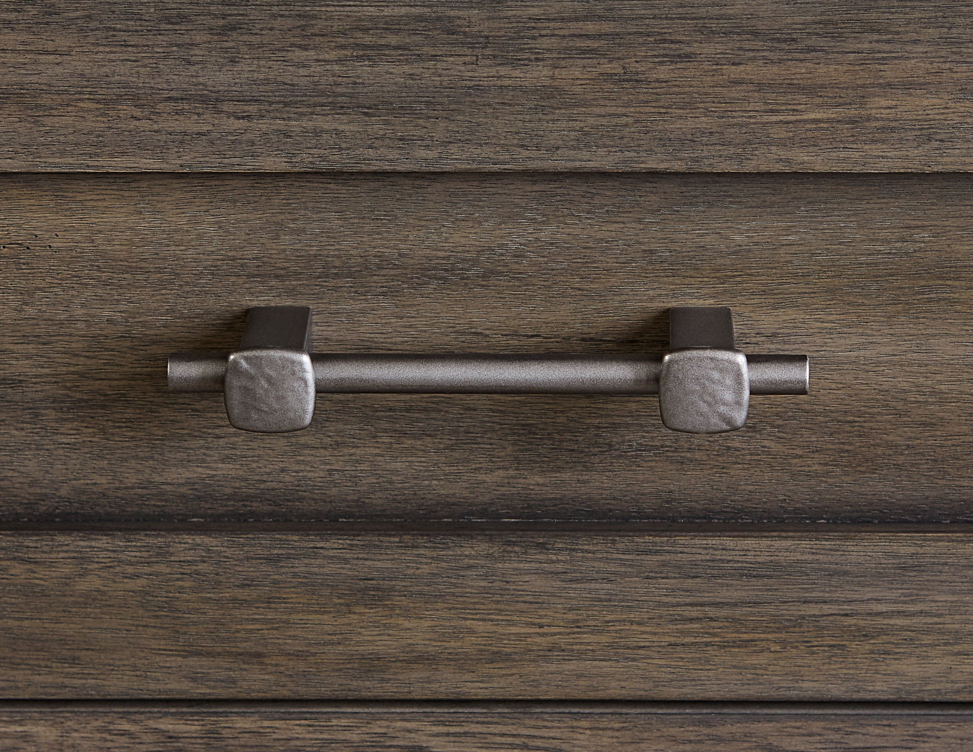 With clean lines and a rustic casual look, Bunkhouse is sure to pop in any room. Crafted with select hardwoods, the six drawer Dresser is a versatile addition to this collection. The drawers are embellished with galvanized finished pulls that stand out against the aged barnwood finish. Pair with the 8830-0100 Vertical Mirror for a unified look. Or slide under the N8830-8330K Mid Loft Bed for extra storage. This dresser embodies the natural feel of this strong, unique collection. Anti-tip hardware is included. CA Carb P2 Compliant.