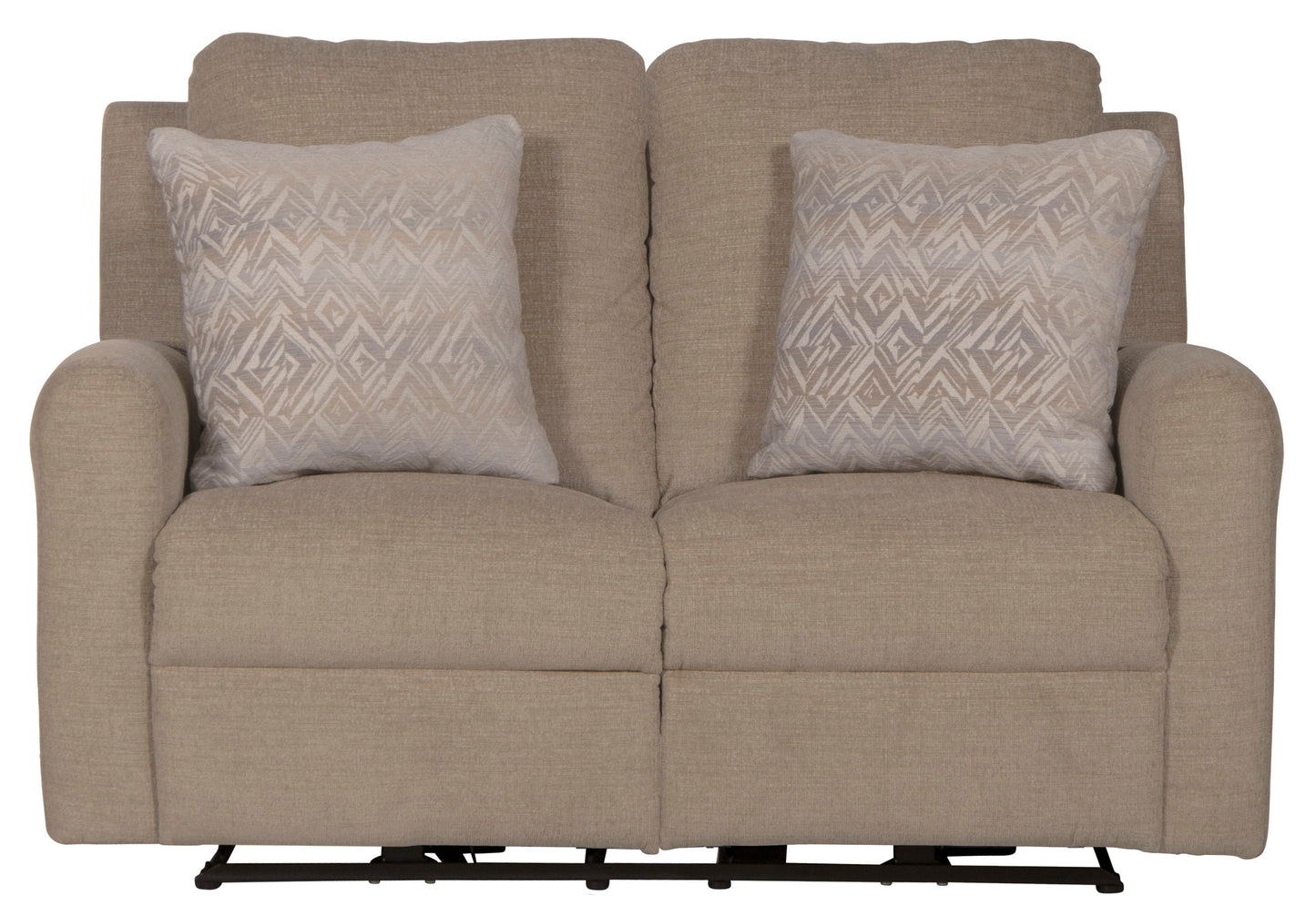 Calvin has a transitional design with a modified track arm and soft chenille fabric. The Calvin loveseat includes two fashion accent pillows. Calvin is available in your choice of two colors - Otter or Putty.