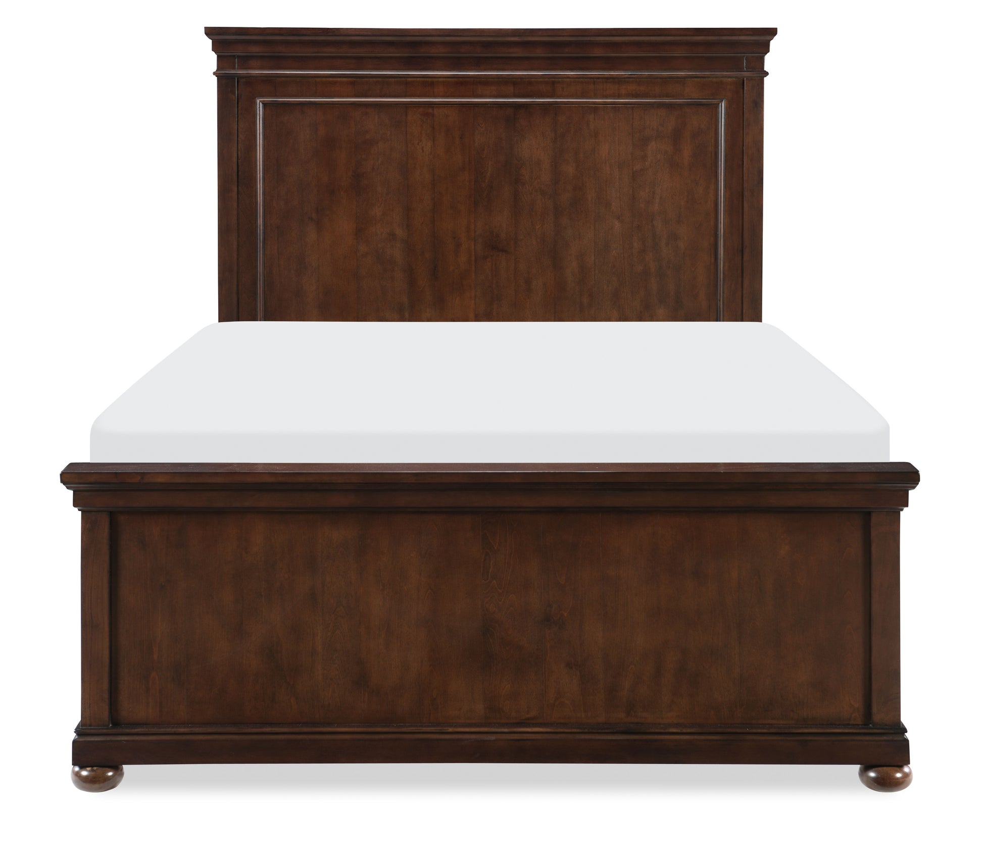 With a finish, the Canterbury bedroom collection is sure to shine in your home. Clean lines and bun feet give the complete full Panel Bed elegant sophistication that will compliment any décor style. A flat top crown adds beautiful depth and dimension. Crafted from poplar solids and rustic birch veneers, the full Panel Bed is a timeless accent that will endure in its simplicity. Pair with the 9814-9300 Underbed Storage Unit to tuck away extra bedding or the 9814-9500 Trundle/Storage Drawer for additional sleeping accommodations. CA Carb P2 Compliant.