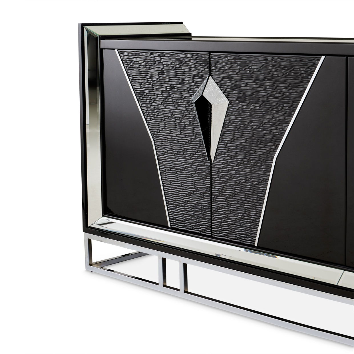 The perfect sidekick. Whatever you pair the side table with will immediately upgrade its look. The stunning piece features beveled mirror panels that add a sense of depth and intrigue to the piece. The shimmering finish and matching titanium legs create a luxurious and sophisticated look that complements the rest of the Carmela collection. Use it as a side table for your favorite chair or as an accent table in another room and enjoy the versatility and style that it brings.