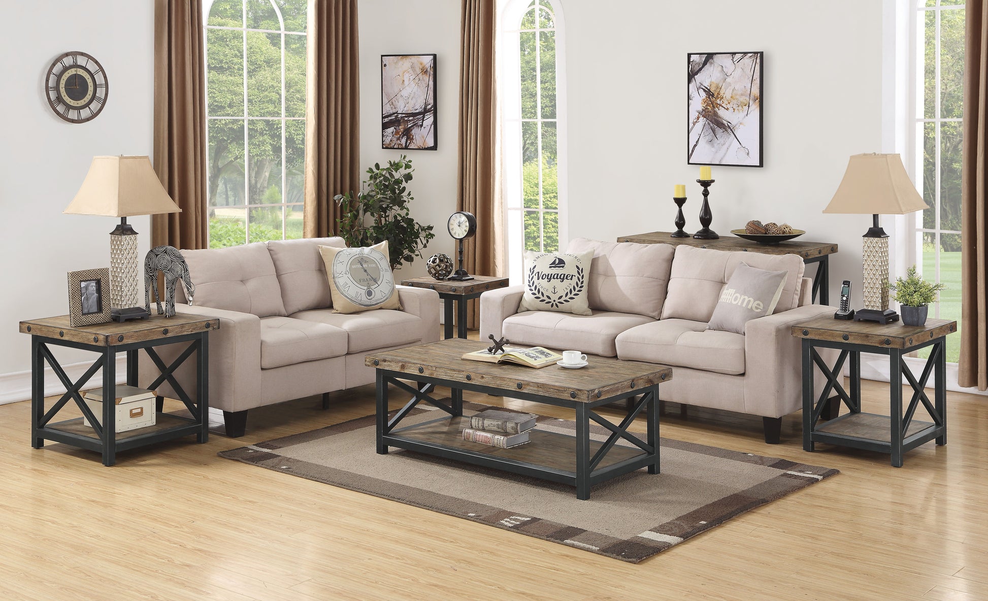 Industrial construction inspired by vintage workbench design. Drawing inspiration from vintage workbenches, the Carpenter rectangular coffee table is constructed of solid wood planks, distressed for a reclaimed look, and hand-worked metal frames. Exposed bolt heads underscore the aged, oiled finish that resembles an industrial steel framework. This table fits beautifully in a long, narrow room where space is limited.
