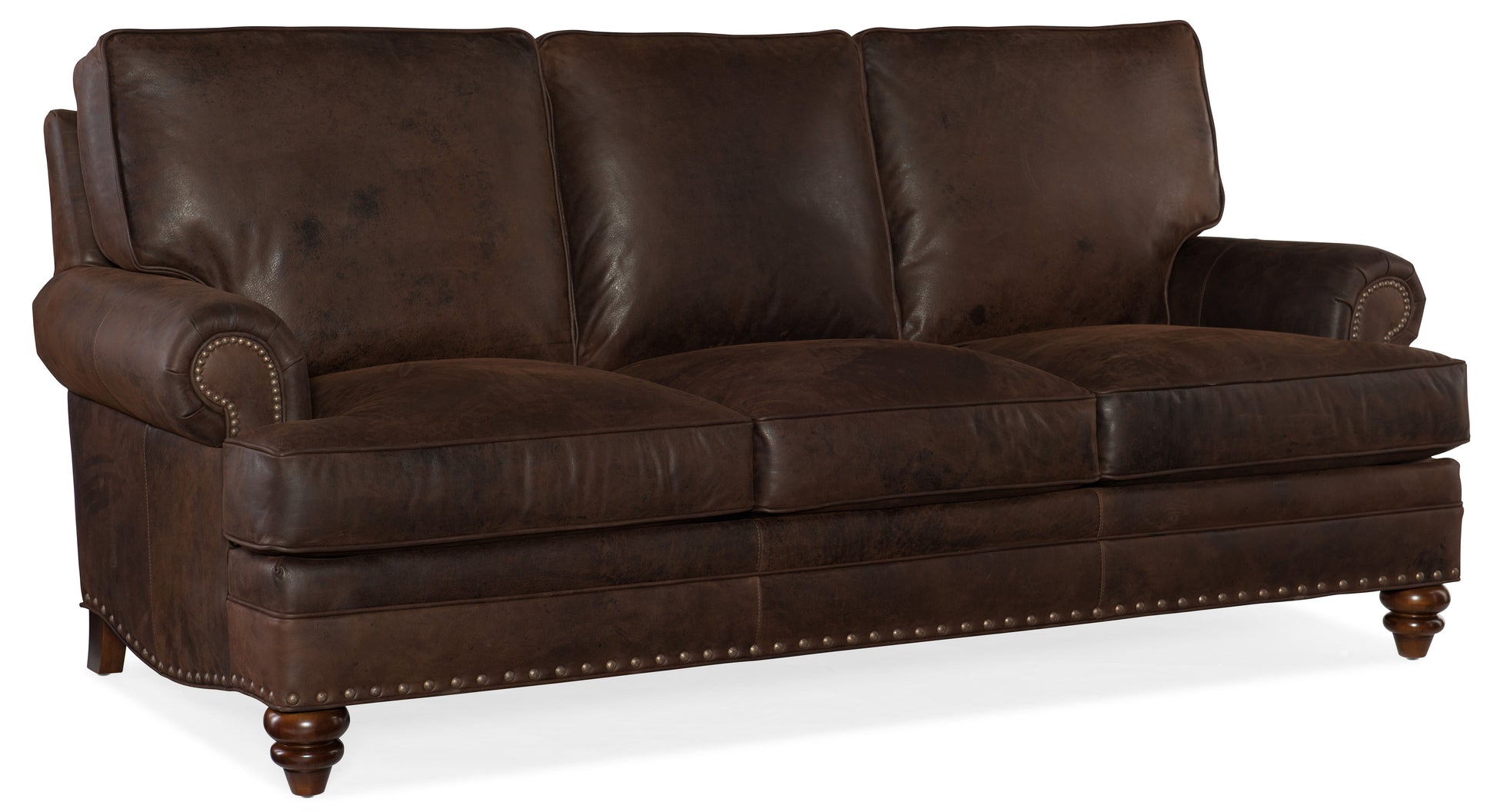 The Carrado Stationary Sofa 8-Way Tie is offered in hundreds of leather options and includes a standard nailhead trim #9 and #54 in natural finish. Other decorative nailhead finishes are available. Comes with a standard mahogany finish but other finishes are available. It features a loose back and a premier down seat. Meticulously hand-crafted by artisans with decades of upholstered furniture engineering experience, Bradington-Young is the ultimate choice for luxury stationary seating. Featuring genuine eight-way hand tied custom coil construction – the industry benchmark for comfort, lasting quality and a consistent ride across the entire seating surface – we take pride in creating the most comfortable, stylish and highest quality leather seating available. From sophisticated traditional styles to luxe modern with a variety of designs in between, make a statement in your home with the ultimate blend of luxury, style and comfort with Bradington-Young. Our uniquely styled stationary frames are available in more than 135 premium leathers, over 200 fabrics and an assortment of nail head and wood finish options to further customize your look.
