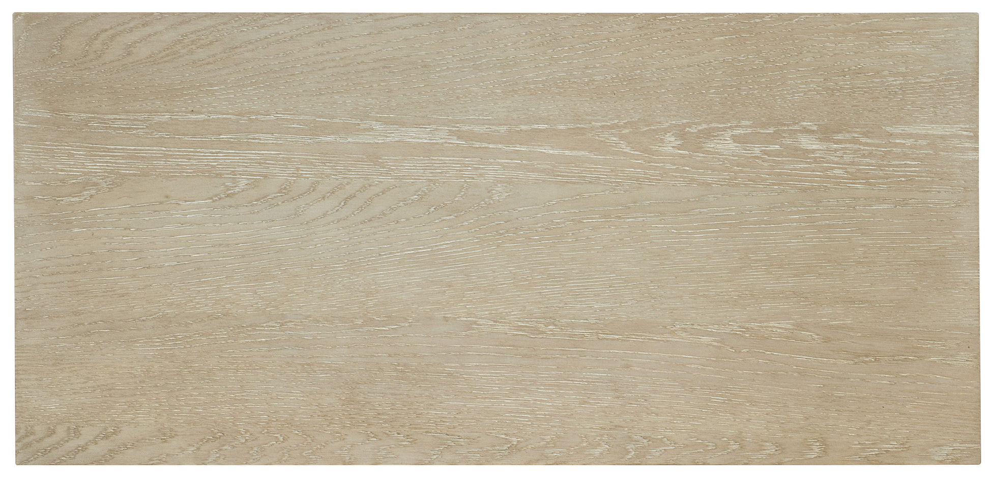 - Finish Description: Terrain: a soft, taupe finish on oak veneers. Distressing includes dry brushing. Champagne colored bar pull hardware and metal base.