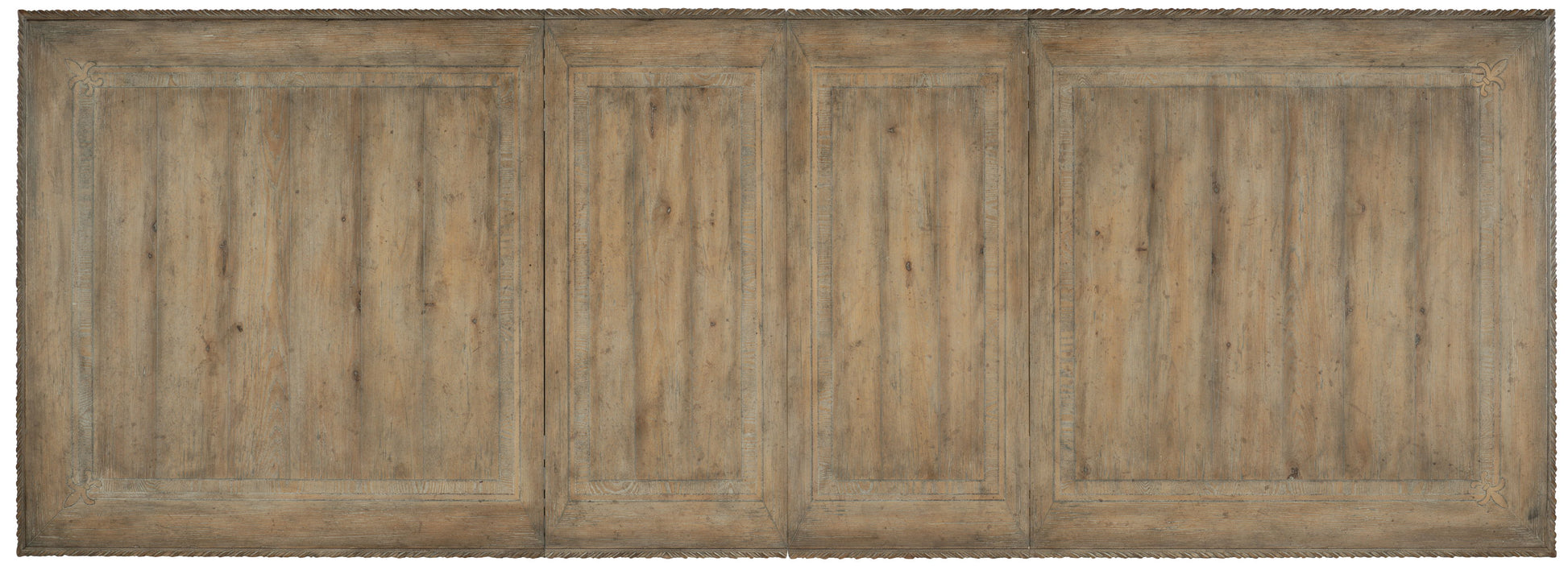 - Table extends to 128-inches long with leaves in place