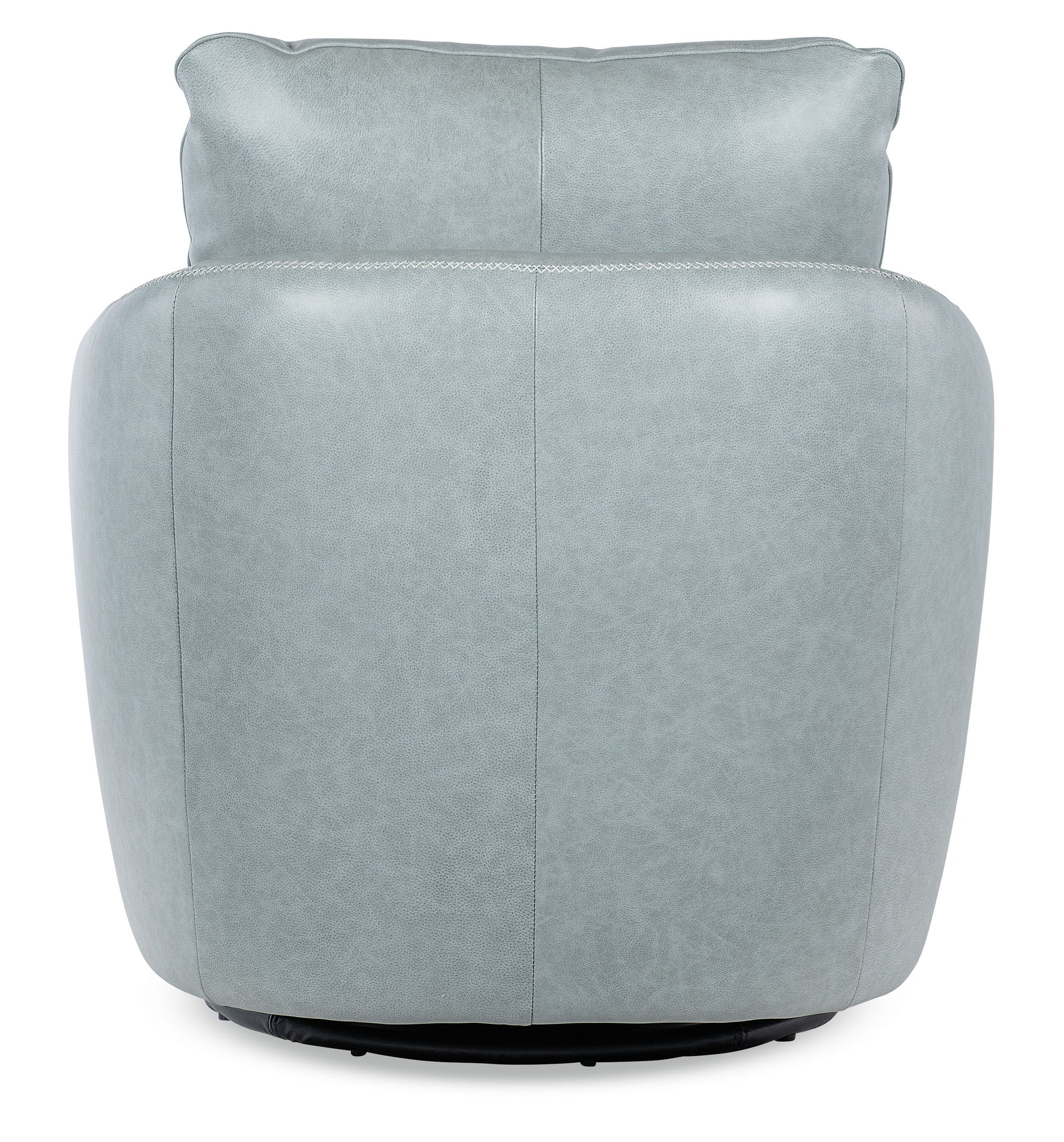 Offered in serene light blue Stormy semi-aniline top grain leather with top-stitch detail, the Bonnie Chair has a soft modern look and combines the comfort of both swivel motion and a touch-activated power footrest, along with a convenient USB port.