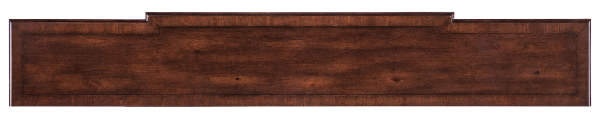 With flair and grace, the Charleston Console Table has a narrow rectangle shape and 3-tiered design, with the shelves separated by 8 decorative carved wood scrolls. The table has antique bronze metal ferrules on the feet, tapered legs, carved accents and an inlay border on the top. Crafted of Cherry Veneers with Walnut Inlay, it is finished in Maraschino Cherry using natural grain Cherry Veneers showcasing cathedral patterns in the wood. Two fixed shelves.