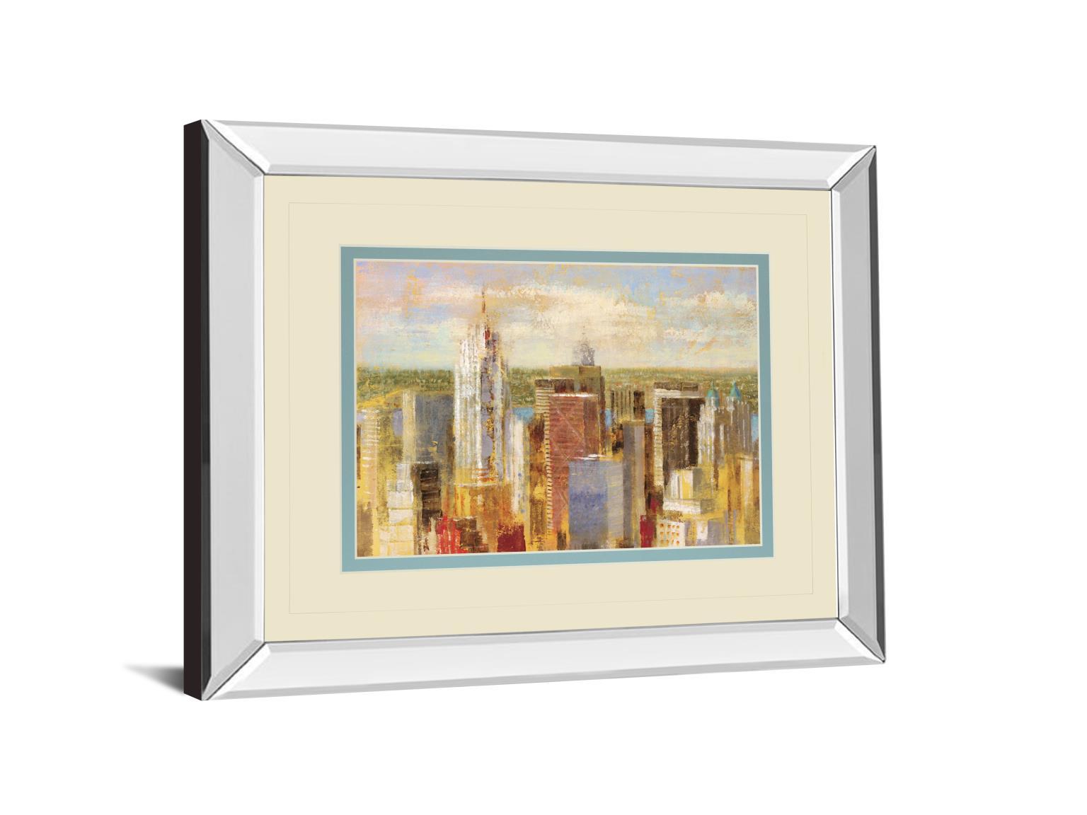 Cityscape Il By Longo - Mirror Framed Print Wall Art - Blue
