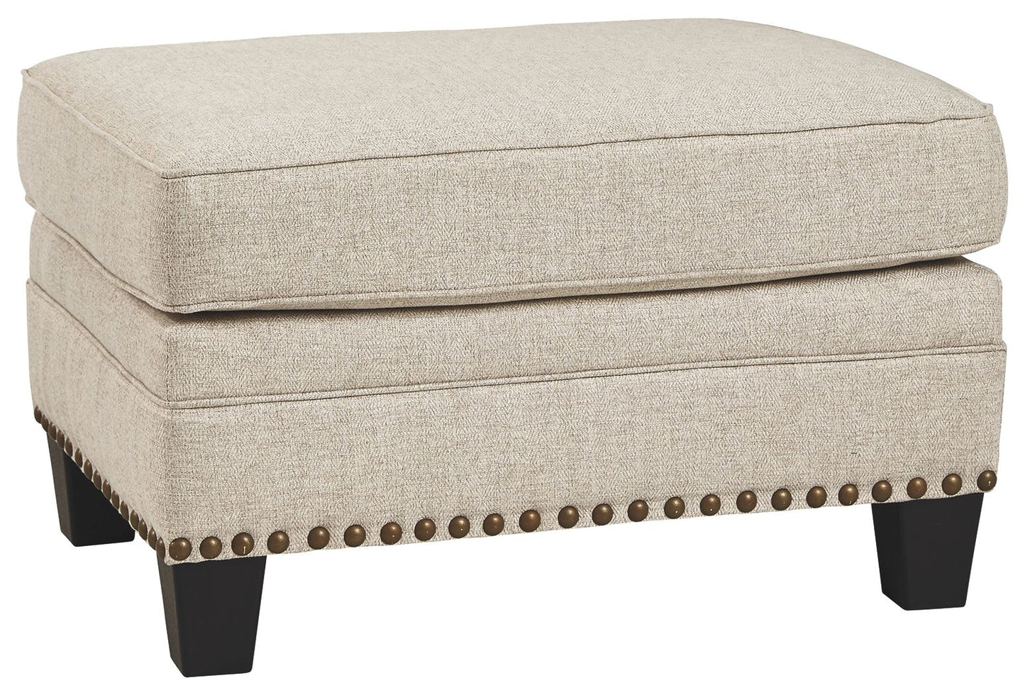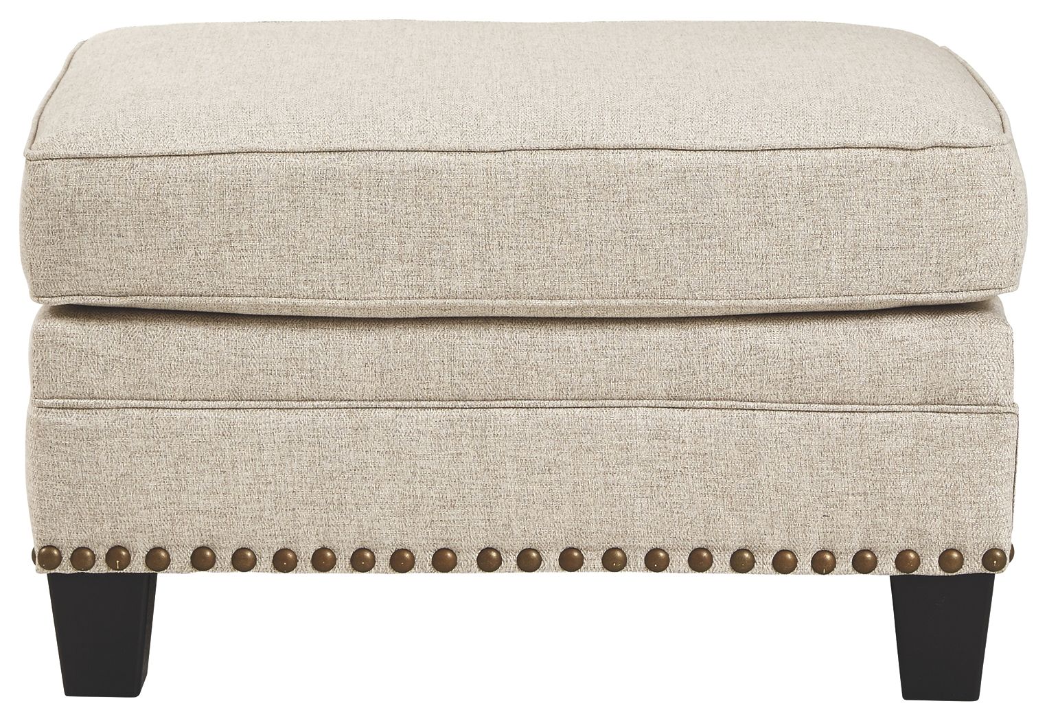 A case of contemporary and classic style influences coming together in a beautiful way, this ottoman in beige brings a fresh perspective to modern farmhouse living. Distinctive elements include nailhead trim and a lovely linen-weave upholstery for an up-to-date feel.