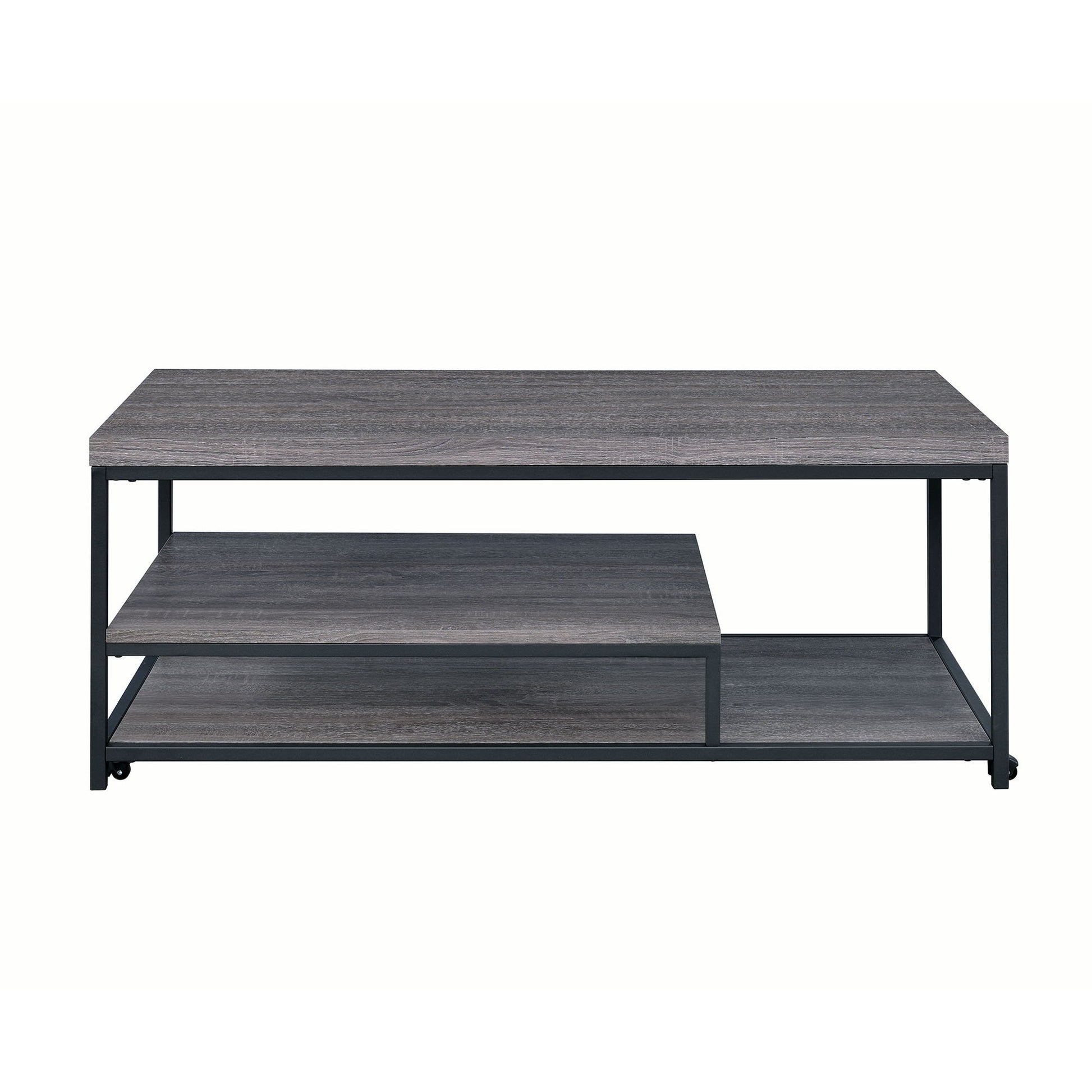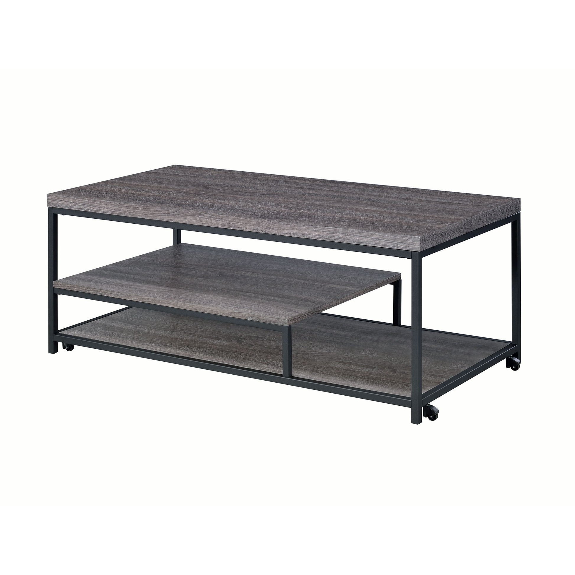 The Clemens 3PC Occasional Cocktail Table Set is the missing trio to your living room! This set comes with a coffee table and two end tables, making it the classic living room combination. The tables feature wooden tops and shelves and the base and legs are metal. There is plenty of shelf space to display your coffee table books and any decor you might have. The wood is finished in a weathered gray oak that will easily transition into any living space with any furnishings. Add this trio to your home today for an instant timeless look!