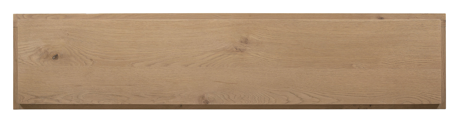 The Haven Console Table from the Commerce & Market collection offers a mix of natural oak and luxurious travertine marble. The medium natural oak finish highlights the faceted "window pane" design on the table, while the marble accents inset into the panels add sophistication. With a timeless, casual style, this table works beautifully in living rooms or entryways, combining practicality with an elegant touch.