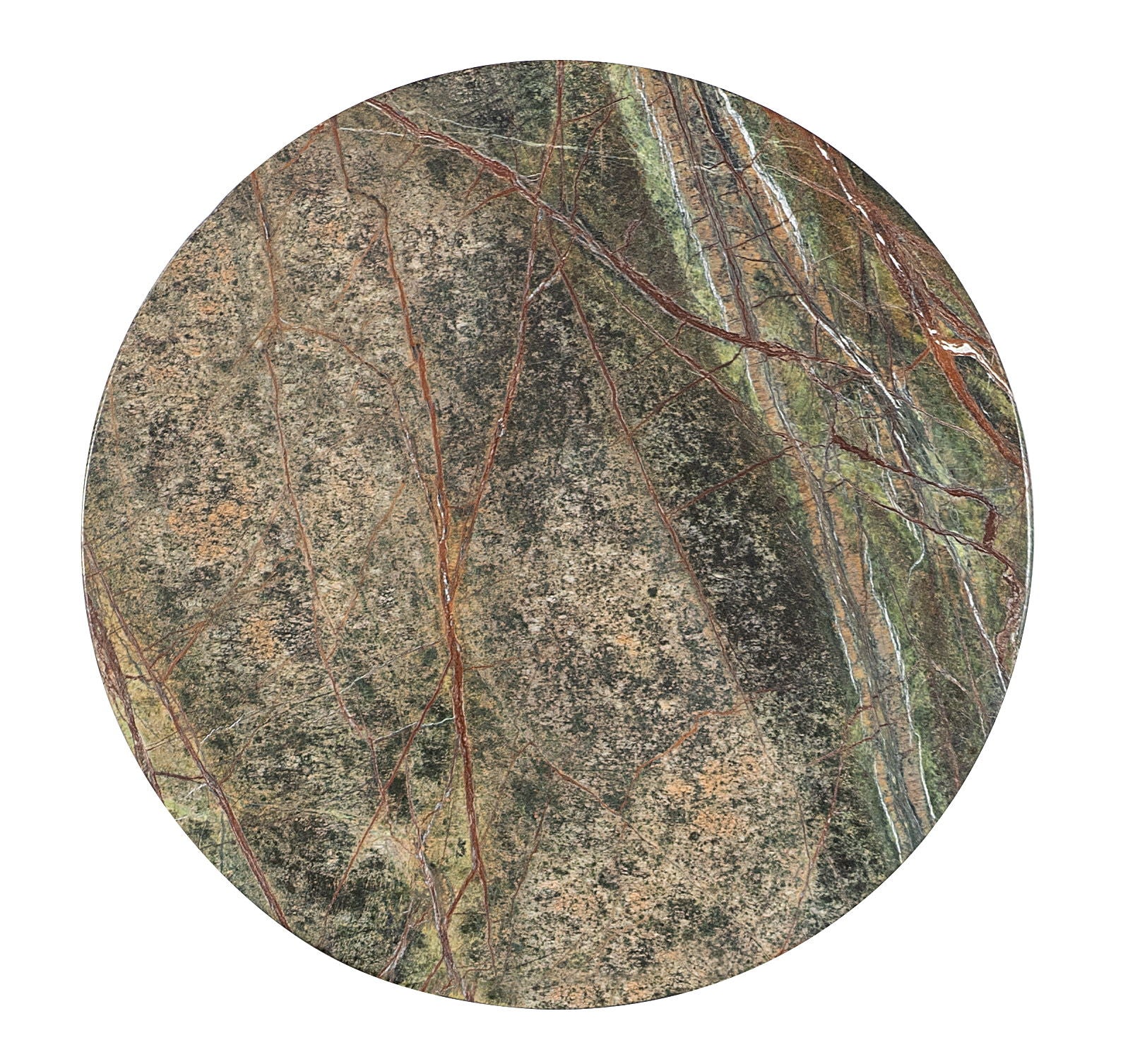 With a pottery-like feel, the Valor Accent Table is crafted of Mango Solids in a black finish with a Green Forest Marble top. At 17 inches round, it has a convenient, compact footprint.