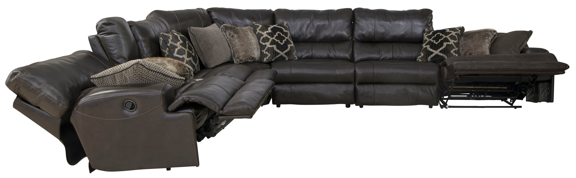Don't settle for fake leather! The Como reclining modular collection features durable Italian top grain cowhide leather everywhere your body touches and precision matched PU on the outside back and sides. There is nothing like the feel of real leather! Attention to style and detail was not missed on this collection. The clean transitional styling, included stylish accent pillows and the bold luggage stitching of the Como will be a great addition to your home. Sometimes reclining furniture has comfort but no style but the Como collection has it all! The seats are constructed with individually pocketed coils encased in foam and topped with cool gel memory foam for maximum comfort and support. The backs are filled with resilient plush polyester fiber to create a seating experience you won't want to leave. Kick back and relax in one of the reclining seats or really stretch out for an afternoon nap with Lay-Flat reclining.